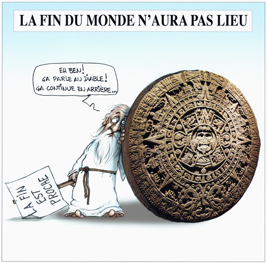 Profitant de la fin du monde annoncée par le calendrier maya, le Musée McCord présente l’exposition La fin du monde… en caricatures! «Les caricaturistes répondent souvent à des catastrophes, des événements malheureux, des désastres, des guerres, des calamité», affirme Christian Vachon, chef, Gestion des collections du Musée McCord. On a fait le lien avec la fin du monde prédite par les Mayas qui est un peu notre thème d’accroche.»