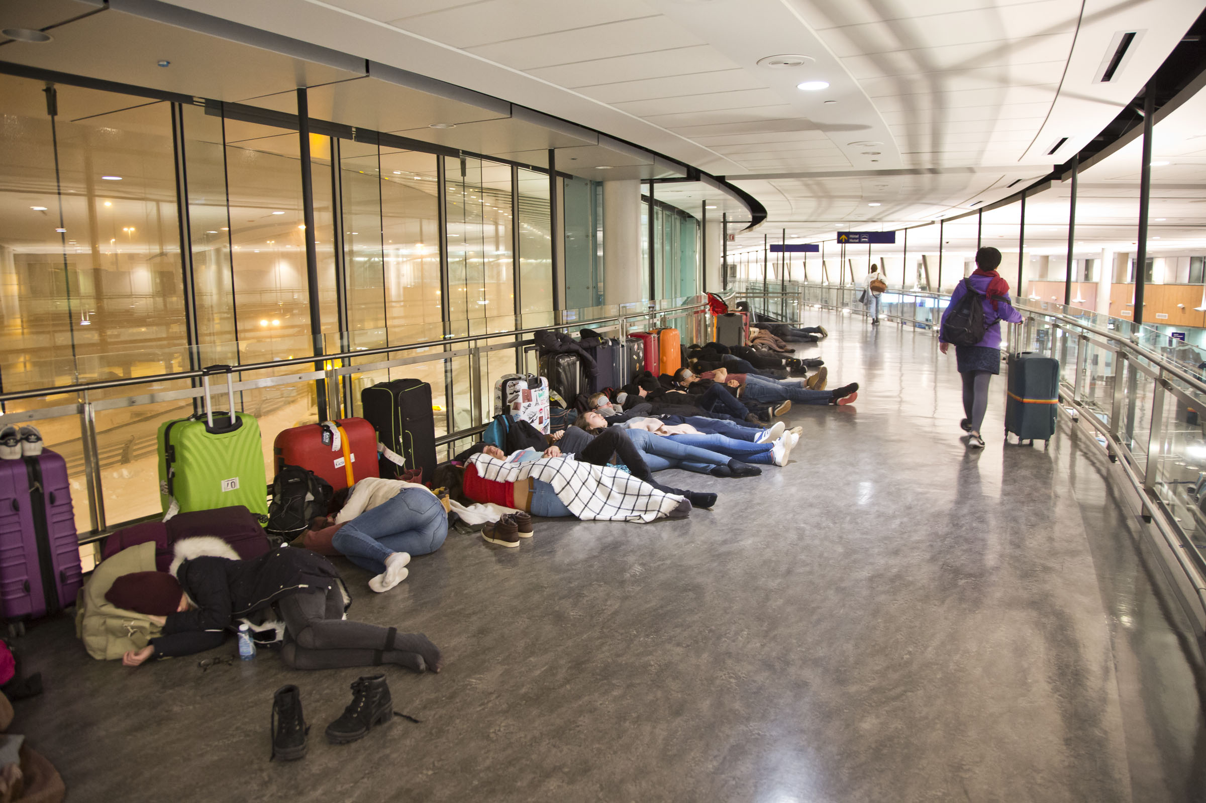 La tempête a entraîné l’annulation de plus de 350 vols en deux jours à l’aéroport Montréal-Trudeau, la plupart en provenance ou à destination des États-Unis. Des centaines de voyageurs ont dû dormir dans le terminal.