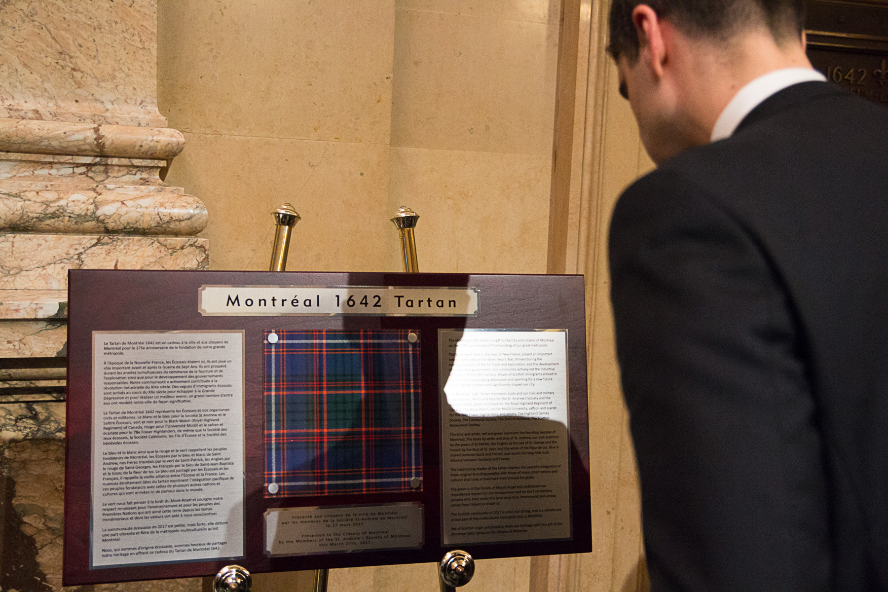 Le tartan officiel de la Ville de Montréal a été présenté lundi au cours d’une cérémonie dans le hall d’entrée de l’hôtel de ville.