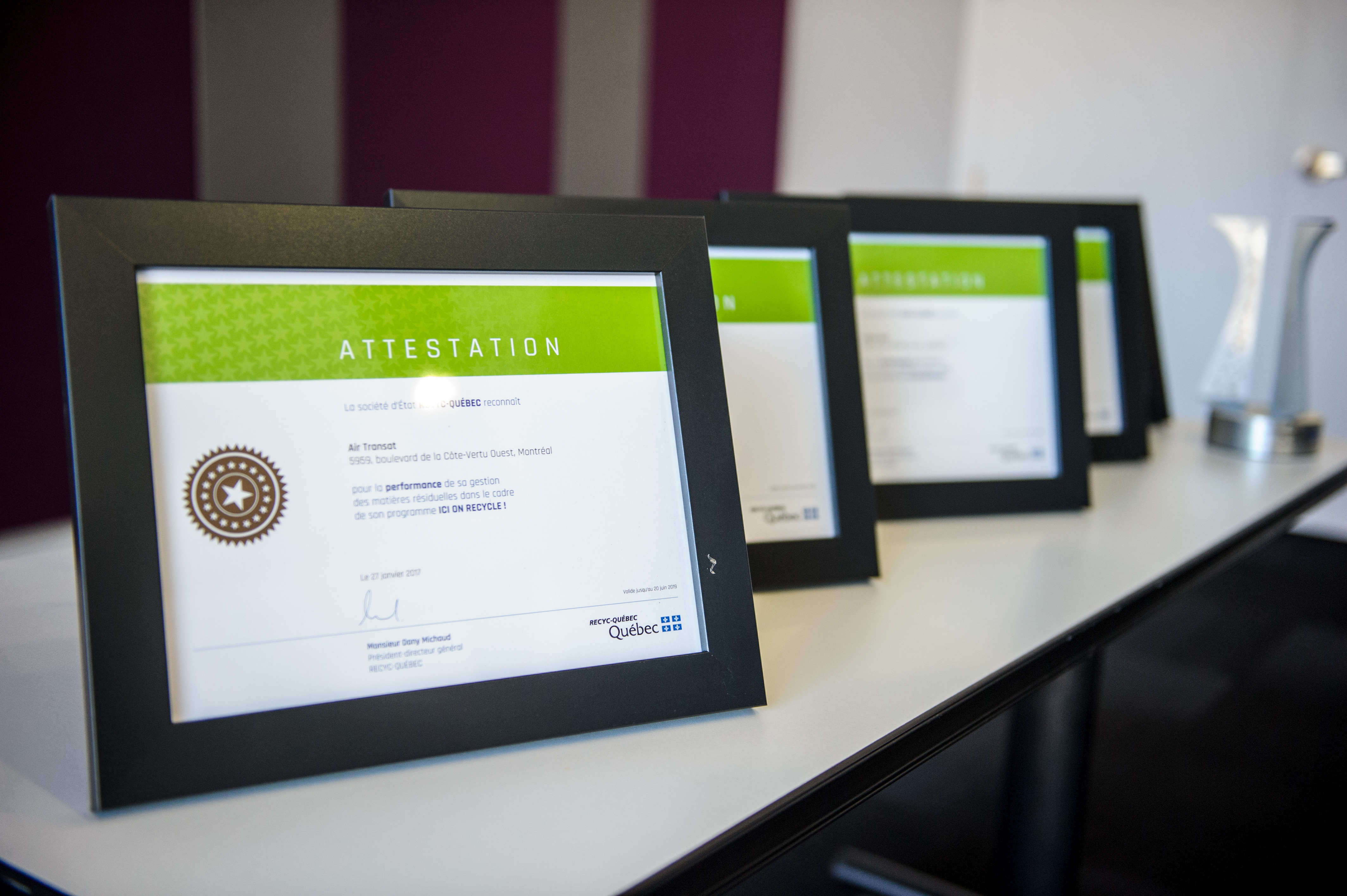 Du côté d’Air Transat, une bonne partie des bons résultats est obtenu du côté de la cafétéria des 400 employés, grâce à la collecte des déchets compostables. «Les excédents de nourriture qui ne sont pas réutilisés sont mis sous vide, congelés et donnés au Chaînon. Nous contribuons à leur banque de nourriture qui permet de préparer 50 000 repas par an», mentionne Geneviève Dubé, conseillère en environnement de l’entreprise. Autre grand défi de l’entreprise : donner une seconde vie aux fluides usés. «On a récemment trouvé une compagnie qui prend notre carburant usé. En ajoutant quelques additifs, ça permet de faire rouler des camions de ravitaillement des avions sur le tarmac», ajoute-t-elle.