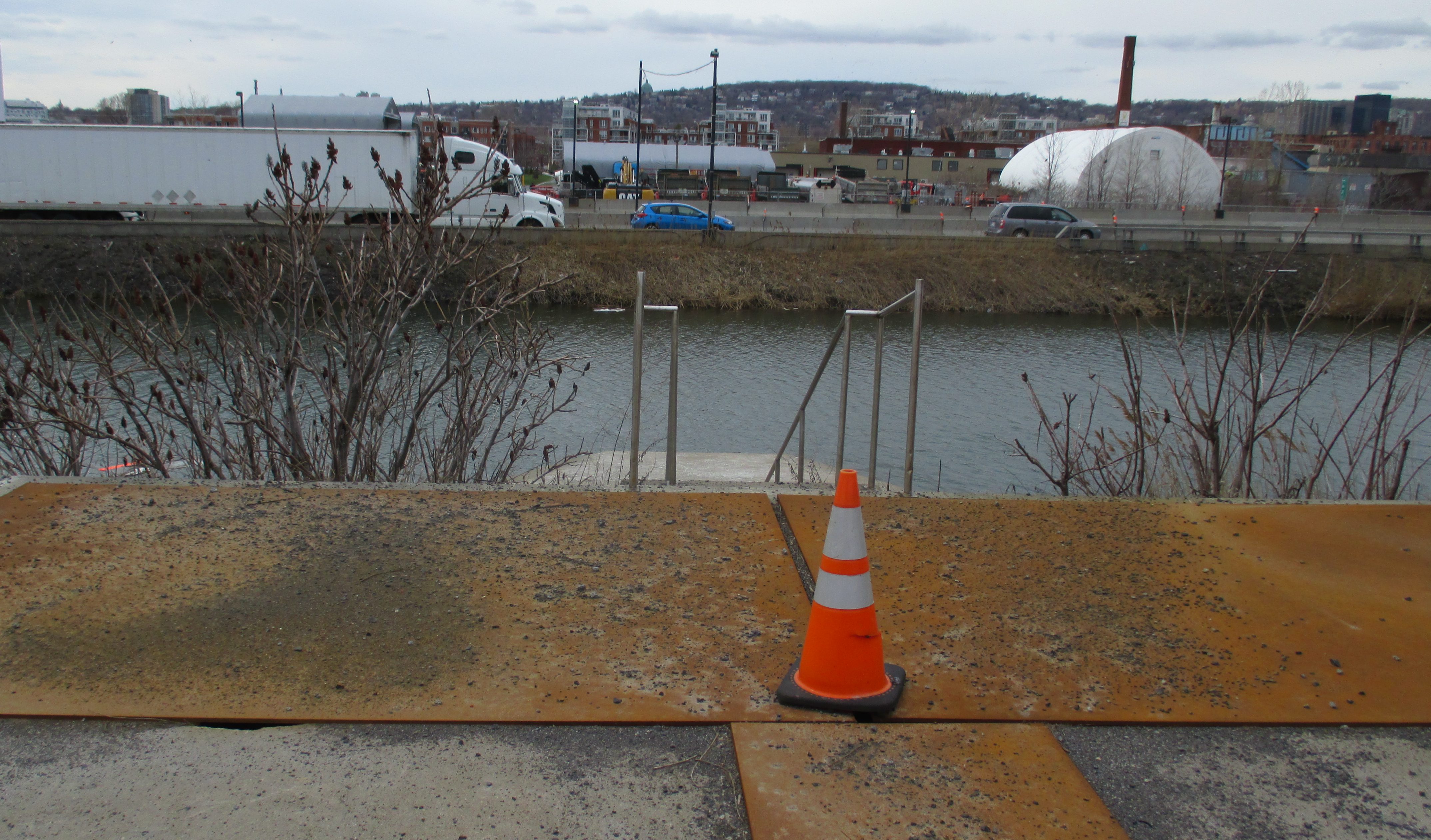 Comme mesures temporaires d’ici la fin des travaux, des rideaux de protection seront installés dans le canal à proximité des travaux routiers.