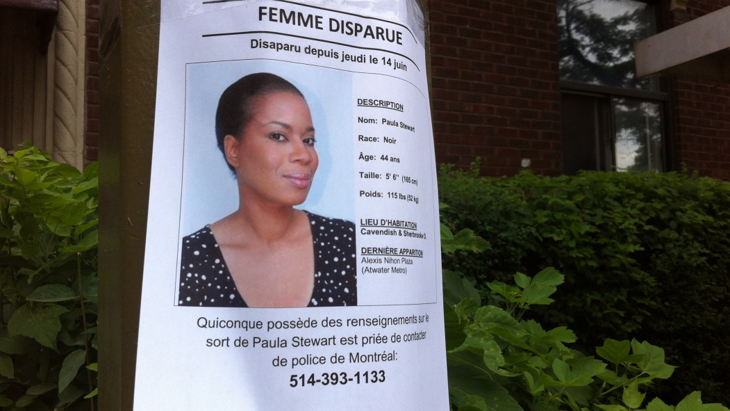 Quelques heures plus tôt, la sœur de la disparue, Sylvia Stewart, et sa famille ont décidé de placarder la photo de Paula dans Notre-Dame-de-Grâce. Mme Stewart espère ainsi inciter les citoyens à être plus vigilants afin de retrouver enfin Paula.