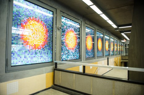L’œuvre de M. Lucca, qui a été acquise au coût de 300 000$, a été disposée à la station Place d’Armes, qui était dépourvue jusqu’alors d’objet artistique.