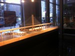 Dans l’espace réduit, on retrouve une maquette en bois du pont Champlain, quelques photos et explications techniques, ainsi qu’une vidéo qui compile les différentes étapes qui ont marqué la construction.