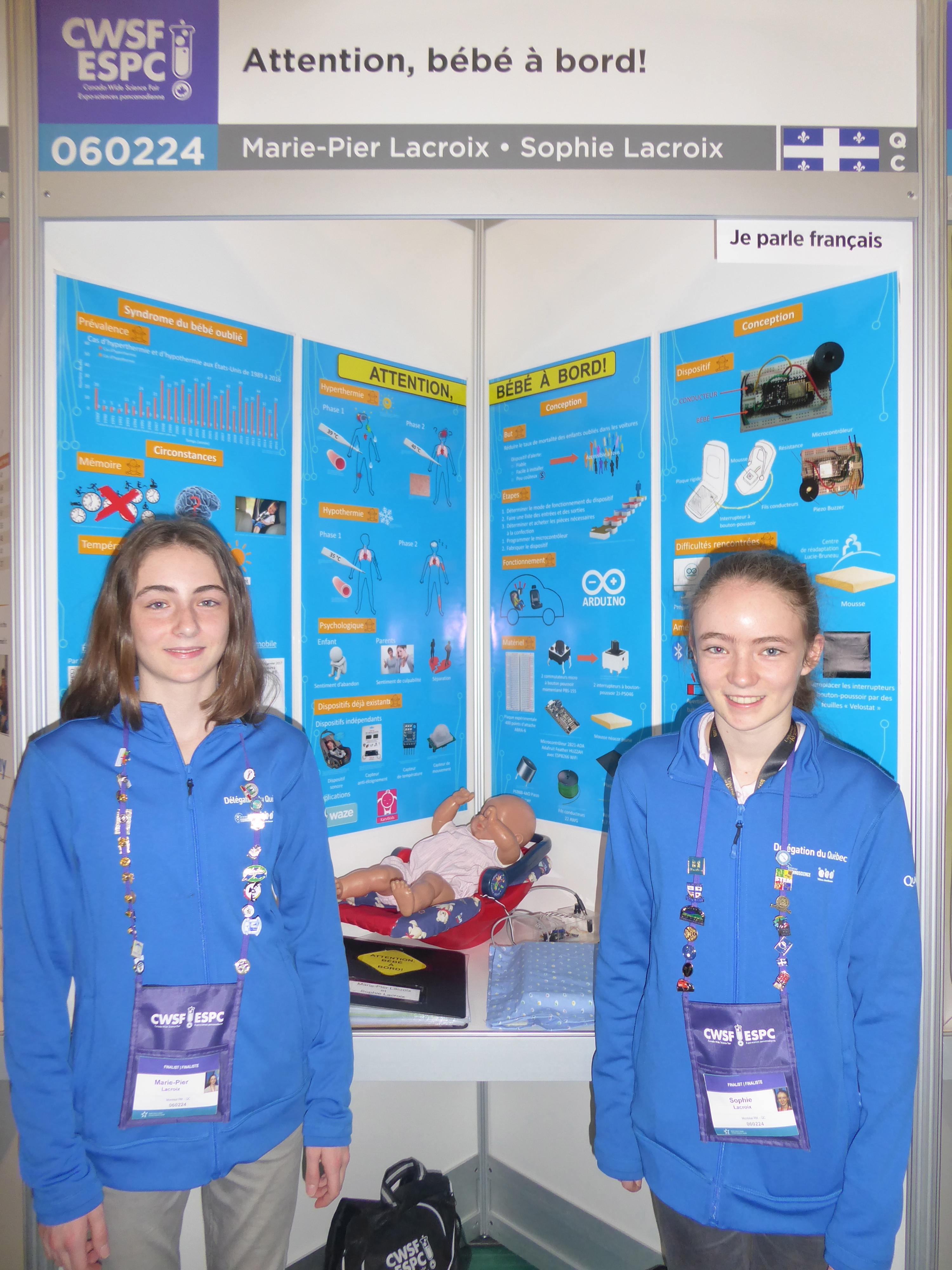 Les deux sœurs faisaient partie d’une délégation de 40 jeunes du Québec. Les sœurs Lacroix en étaient à leur troisième participation à la finale canadienne d’Expo-sciences. En 2015, elles ont réussi à mettre la main sur une médaille d’argent pour une recherche sur la maladie de Lyme.