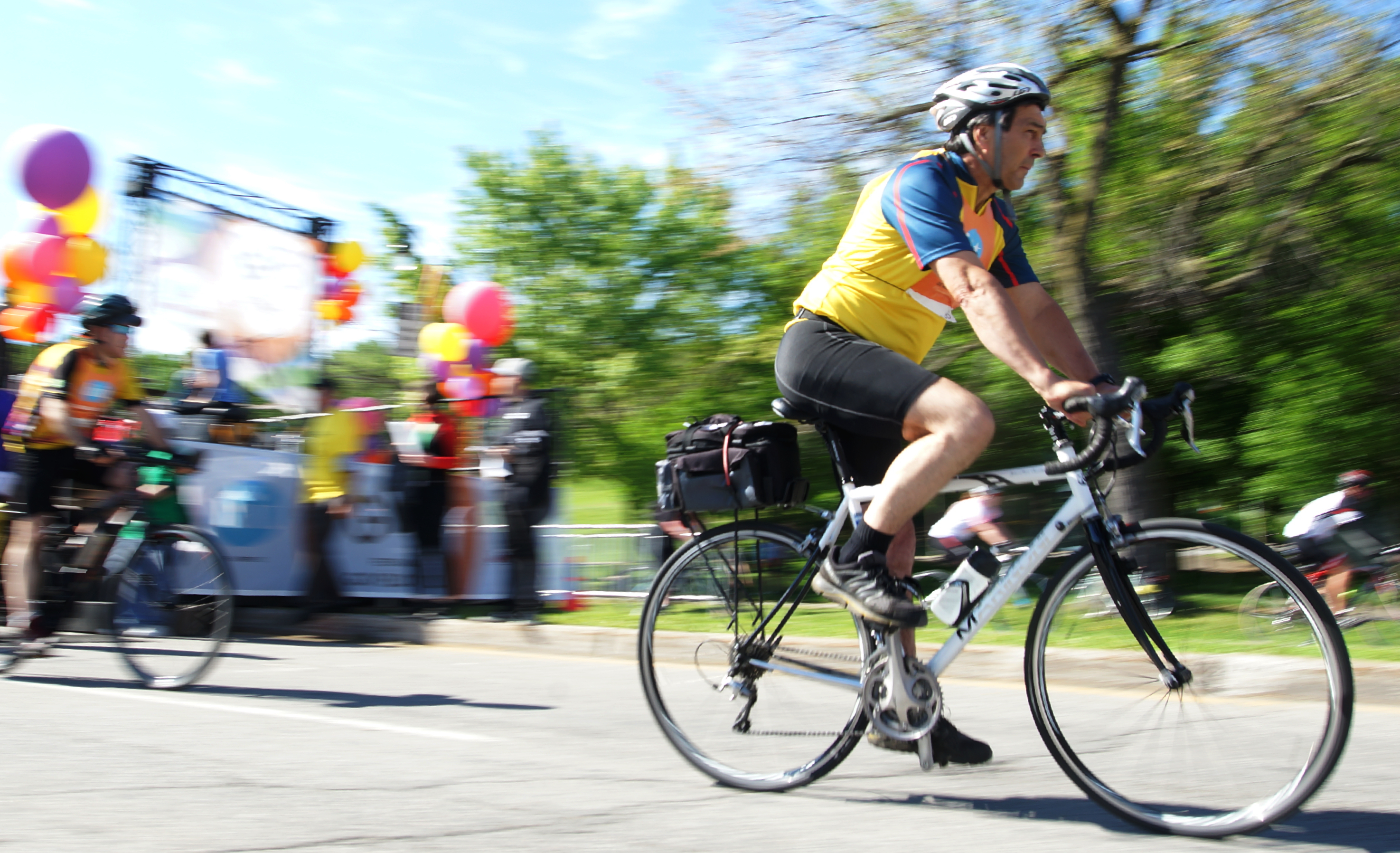 Parc Jeanne-Mance, 9h. Des milliers de cyclistes se pressent vers la ligne de départ du Tour de l’Île. Dans la foule: des familles avec enfants voire bébés, des amateurs, des bénévoles tous accompagnés d’un vélo. Au choix: un parcours de 65 ou de 100 km, qui a commencé à 7h du matin, et de 28 ou de 50 km, à 9h15. Le parcours de 50 km avait la particularité d’accueillir une course «express».