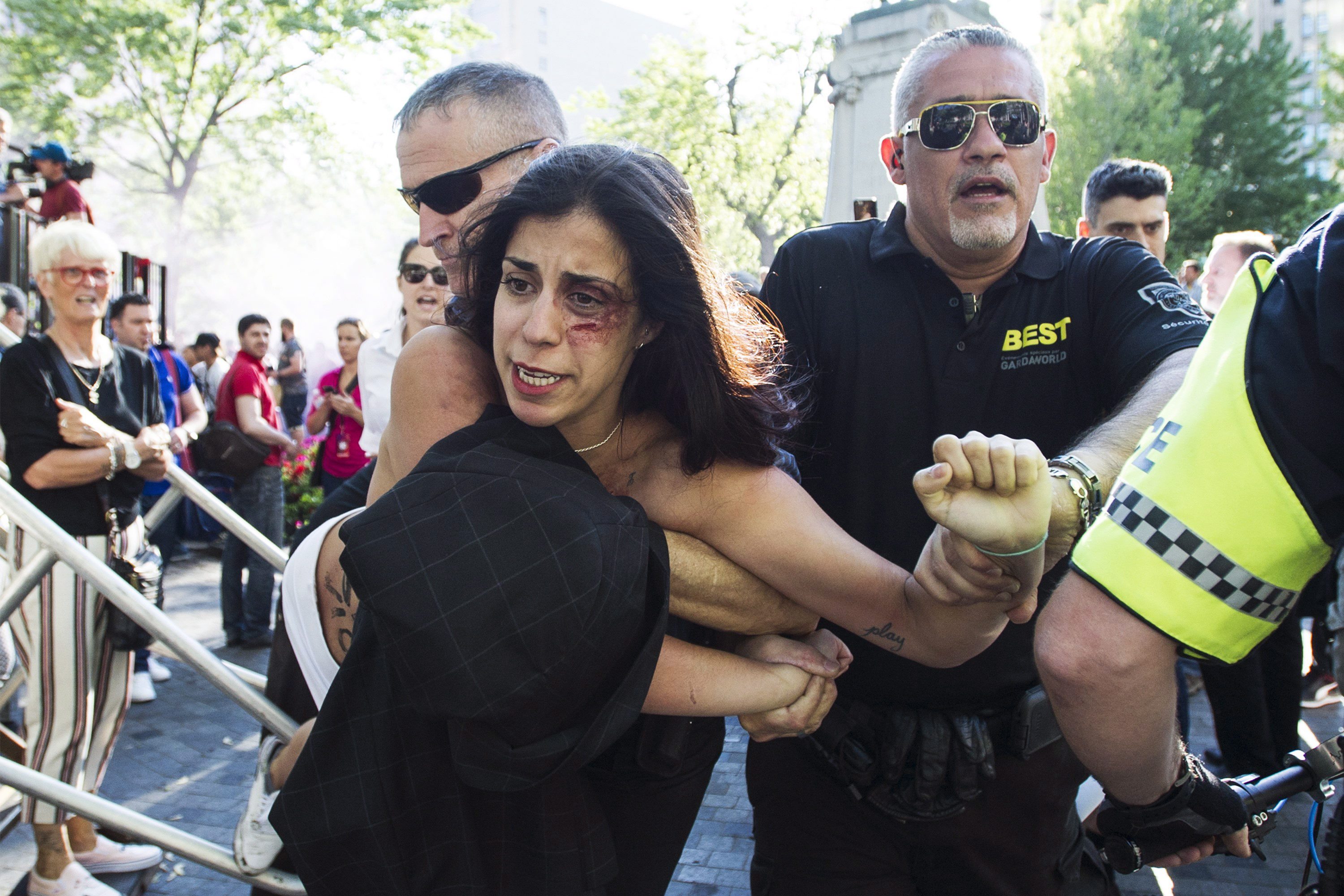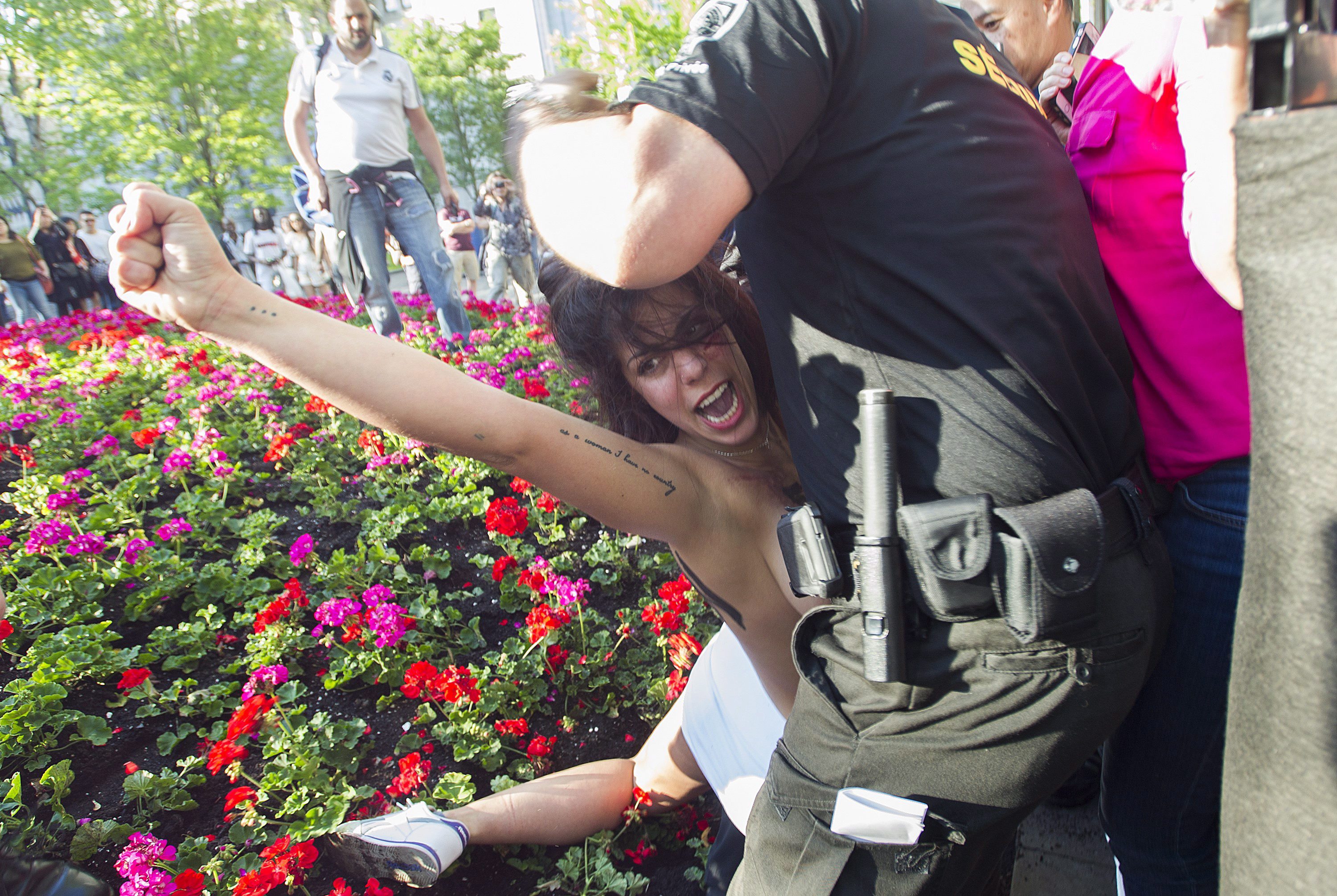 A FEMEN activist protests at a Canadian Formula One Grand Prix event in Montreal, Wednesday, June 7, 2017. THE CANADIAN PRESS/Graham Hughes Photo: La Presse canadienne