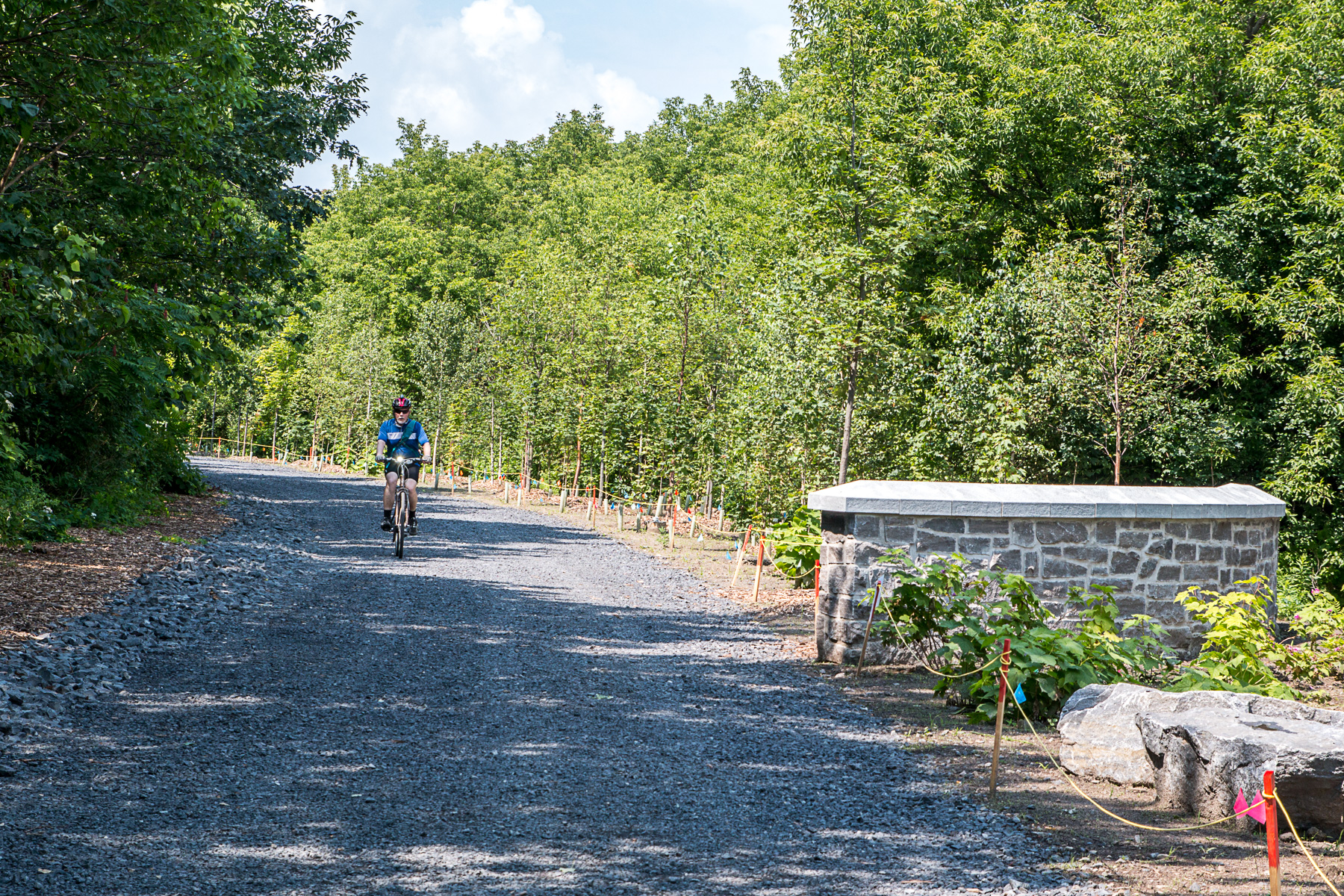 «Le défi, c’est d’assurer qu’on conserve une belle végétation naturelle. On doit tenir compte des espèces qui sont présentes dans l’ensemençage» afin d’éviter de bouleverser la biodiversité végétale du site, a expliqué le chef de division en horticulture et en arboriculture pour la municipalité, Nicolas Mory. Parmi les arbres qui ont été plantés, on compte de nombreux érables, de même que des chênes rouges et des bouleaux.