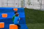 Aire de jeux, espaces verts et chaises longues sur le nouveau boulevard Bonaventure