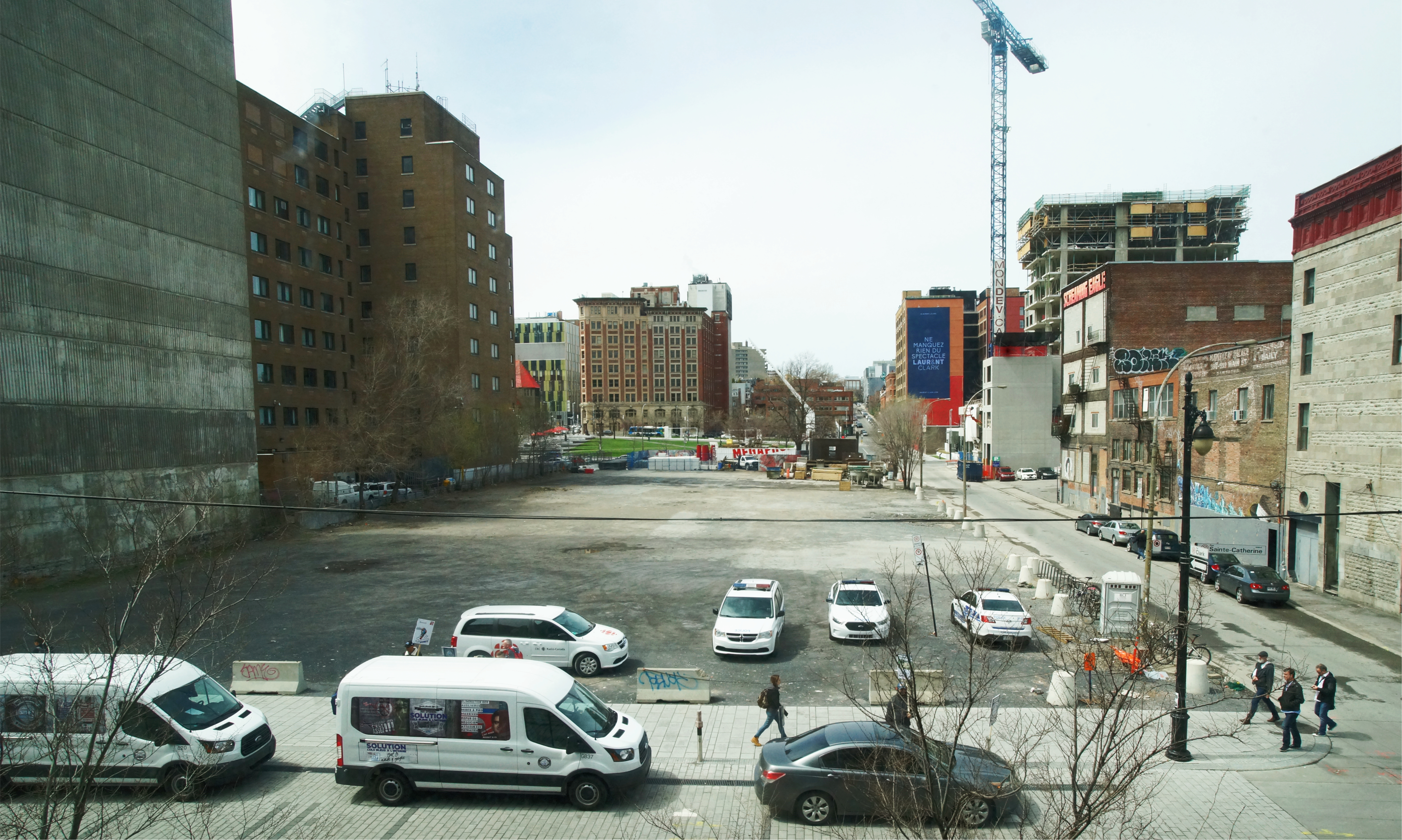 Attendu une première fois en 2012, puis espéré pour le 375e anniversaire de la Ville, cet important projet au coût de 67,1M$ vient enfin d’être lancé. D’ici les prochains jours, des travaux d’excavation et de décontamination de ce terrain abandonné, d’environ 5000 mètres carrés, situé entre les rues Sainte-Catherine et Clark, vont être menés.