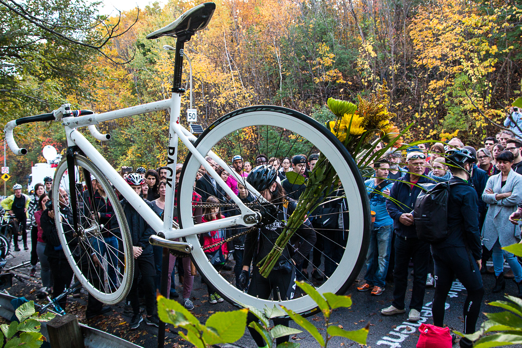 «Un vélo fantôme est un vélo peint en blanc, qu’on laisse à l’endroit précis où un cycliste est mort d’une collision routière, rappelle Vélo Fantôme Montréal, instigateur de cette cérémonie. À la mémoire de cette personne, on souhaite ériger un symbole permettant de susciter une réflexion sur les dangers des véhicules motorisés et des aménagements urbains déficients, tout en commémorant la vie du défunt.»