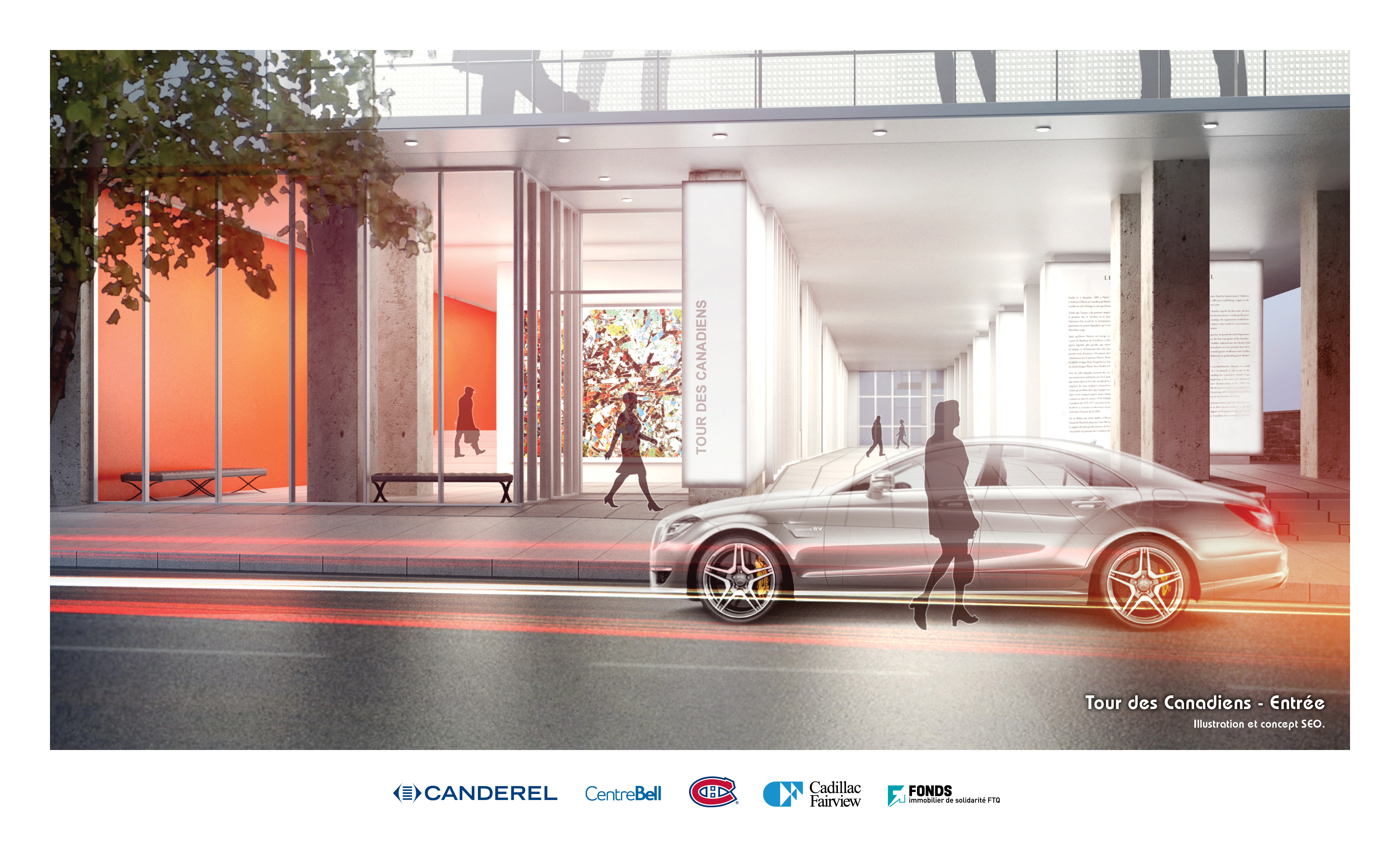 Comme le métro fait partie du paysage sous-terrain de l’immeuble, les neuf premiers étages de la tour serviront de stationnement. Un logo du Canadien devrait être installé au haut de la tour tandis qu’un restaurant/bar sportif «majeur» sera construit au niveau de la rue. La construction débutera l’été prochain et devrait durer deux ans.