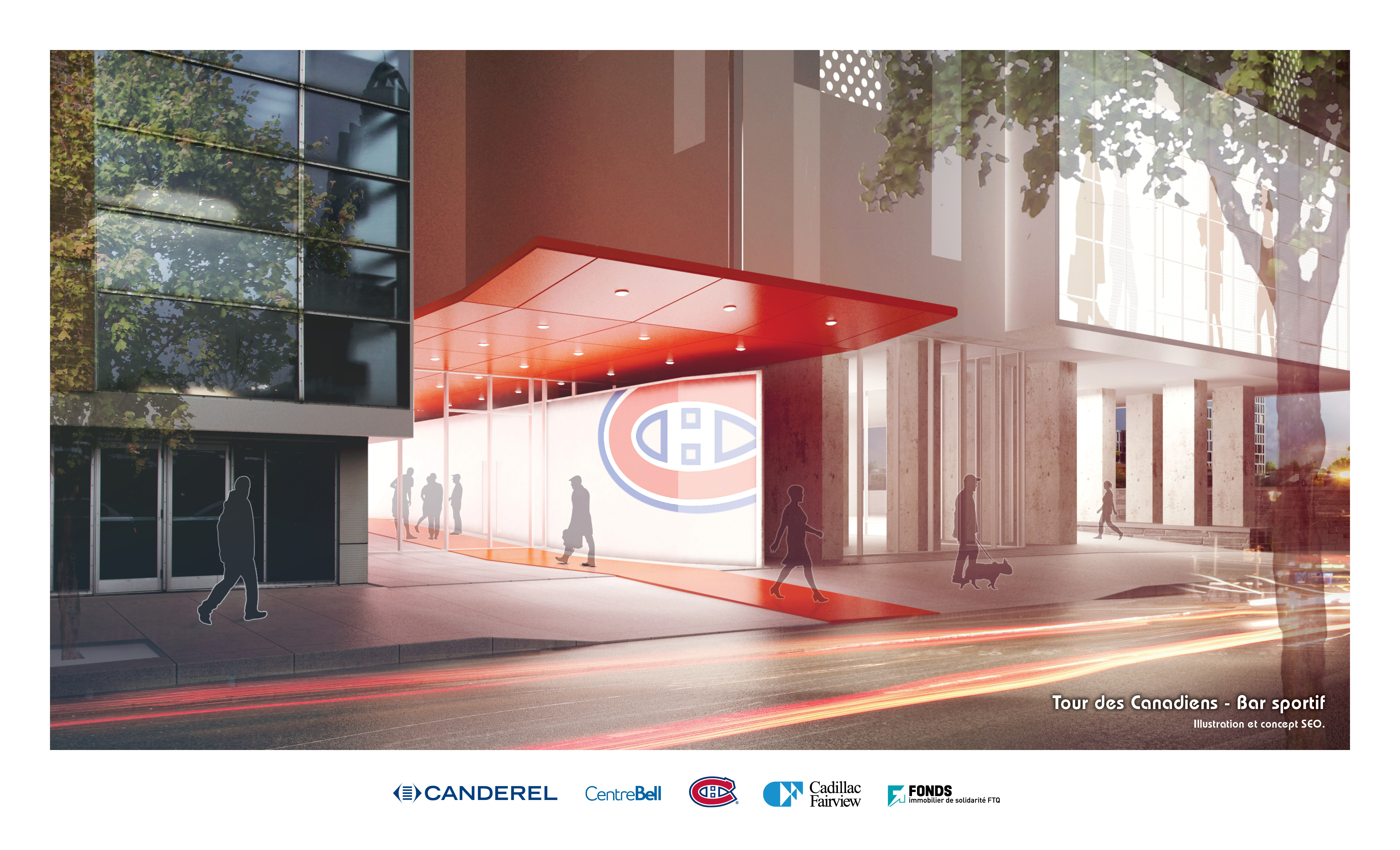 Comme le métro fait partie du paysage sous-terrain de l’immeuble, les neuf premiers étages de la tour serviront de stationnement. Un logo du Canadien devrait être installé au haut de la tour tandis qu’un restaurant/bar sportif «majeur» sera construit au niveau de la rue. La construction débutera l’été prochain et devrait durer deux ans.