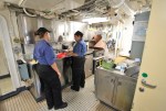 La vie des matelots et des officiers s’est améliorée au cours des dernières années. C’est ce qu’on a pu remarquer en visitant les aires de détente (cafétéria-lounge) où les marins se rejoignent afin de regarder en direct, et sur de grands écrans plats, les différentes épreuves des Jeux olympiques de Londres. Le signal n’est perdu qu’en très haute mer.