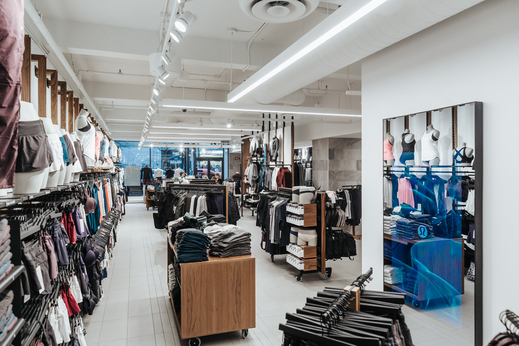 La boutique montréalaise phare de lululemon récemment rénovée a également été agrandie, ce qui lui a permis d’élargir son offre pour hommes. De plus, on y trouve un miroir numérique interactif qui met en lumière les activités offertes dans la communauté. Petite touche design : la marque canadienne a aussi inauguré une murale colorée peinte par Five Eight, un artiste multidisciplinaire d’ici, une oeuvre illustrant deux yogis et un coureur qui reflète bien son ADN.
