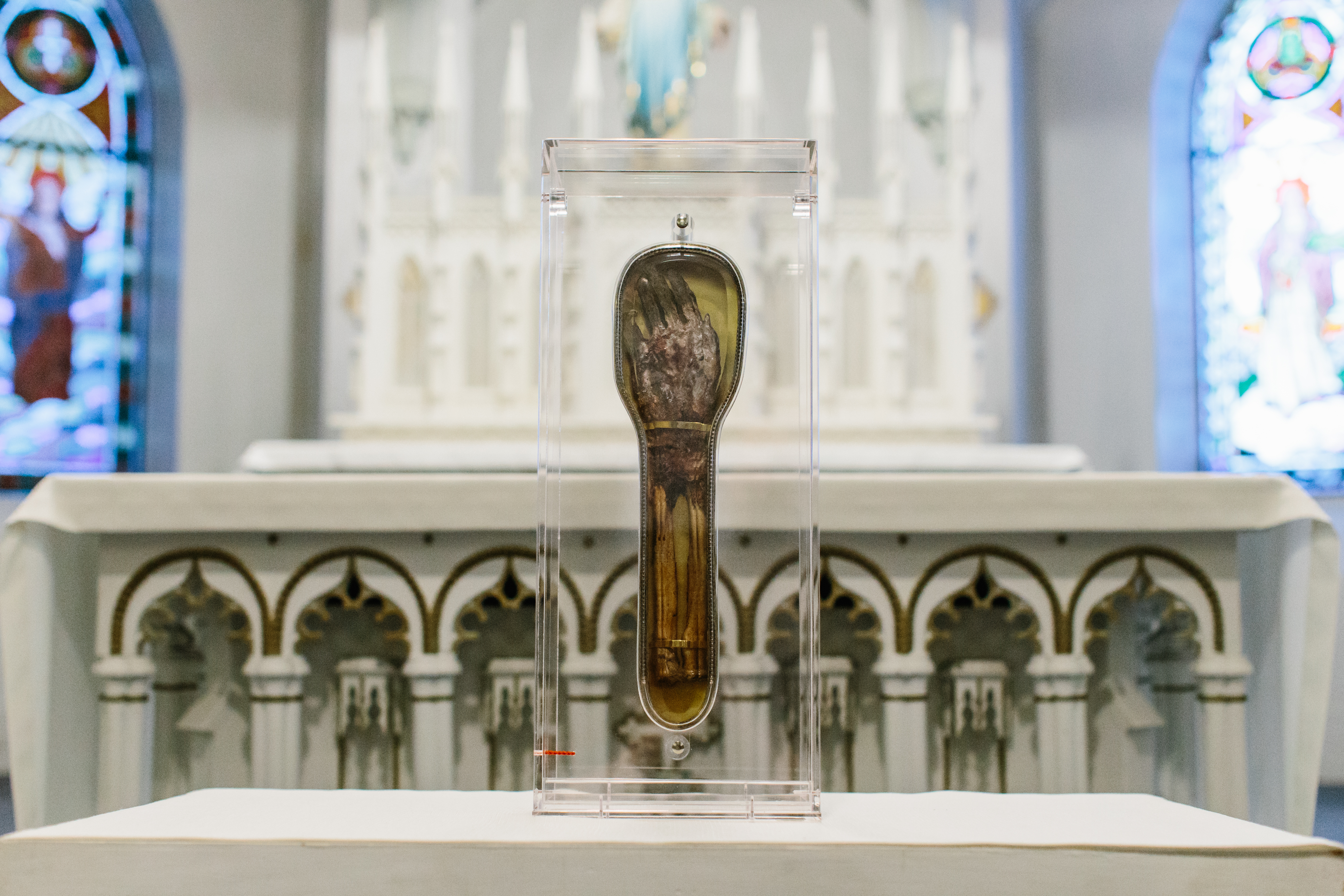 Une relique de saint François Xavier sera exposée dimanche, lundi et mardi dans plusieurs églises de Montréal. L’avant-bras droit du saint ne se serait pas décomposé depuis la mort de celui-ci, au 16e siècle, puisque l’on peut encore en observer les tissus.