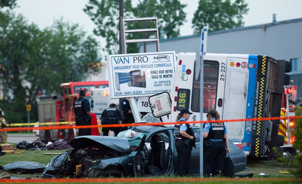 Certains témoins ont toutefois indiqué que, selon eux, le chauffeur de l’autobus roulait trop vite. Le Service de police de la Ville de Montréal (SPVM) indique pour sa part que l’autobus ou la BMW dans laquelle prenait place la deuxième victime a brûlé un feu rouge, sans toutefois pouvoir préciser lequel des deux véhicules était en faute.