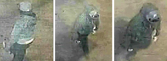 La personne recherchée est un homme à la peau noire, âgé entre 25 et 30 ans. Il portait, au moment du crime, un manteau rayé noir et blanc à capuchon, un pantalon, des souliers et des gants foncés. Il portait également une casquette foncée avec un logo blanc à l’avant et une étiquette sur la palette.