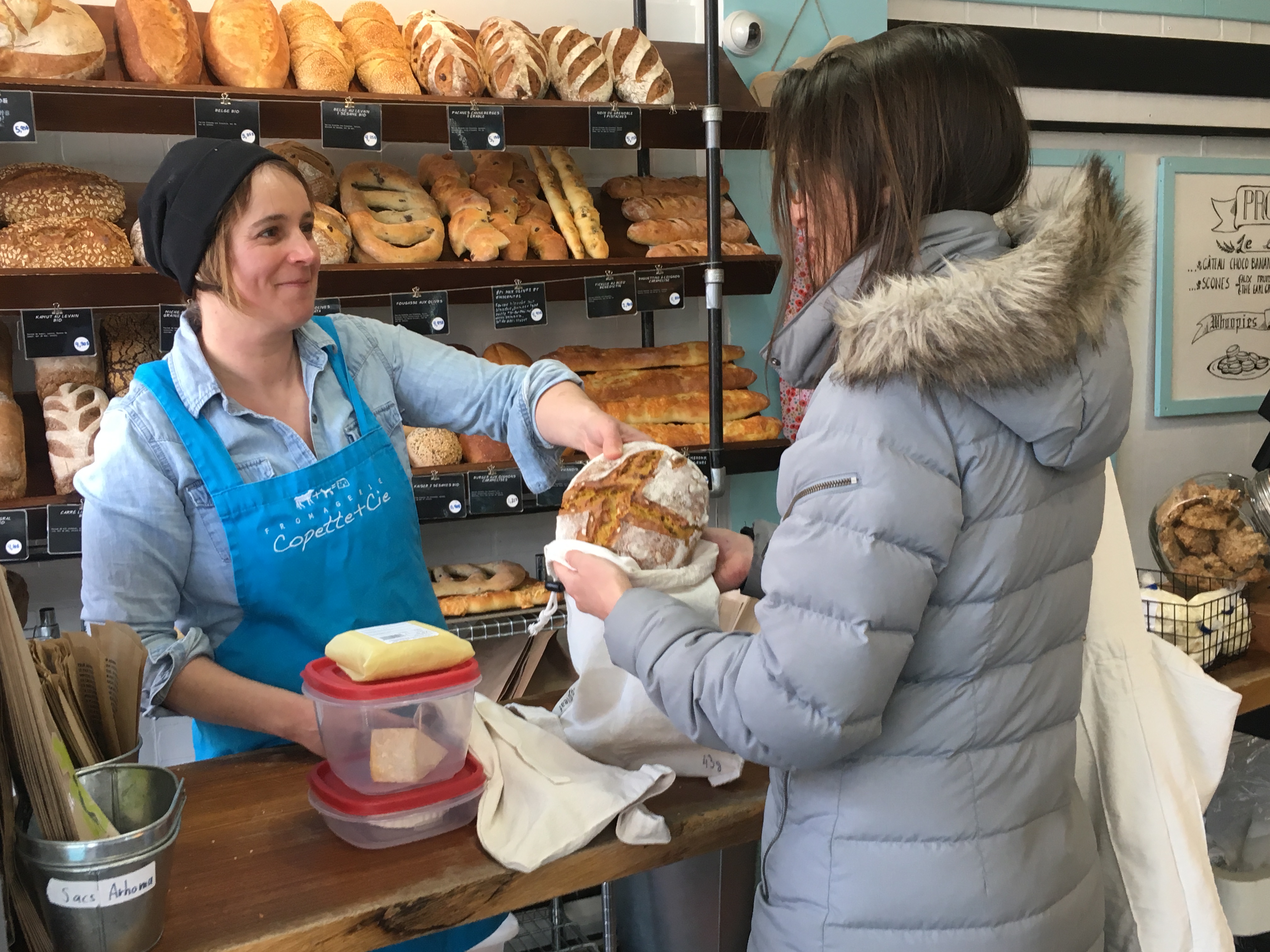 Tous les plats sont acceptés, même si le papier en cire d’abeille est recommandé pour les fromages et les sandwichs. Ceux qui auraient oublié leurs contenants peuvent aussi en acheter directement sur place, notamment des sacs à pain.