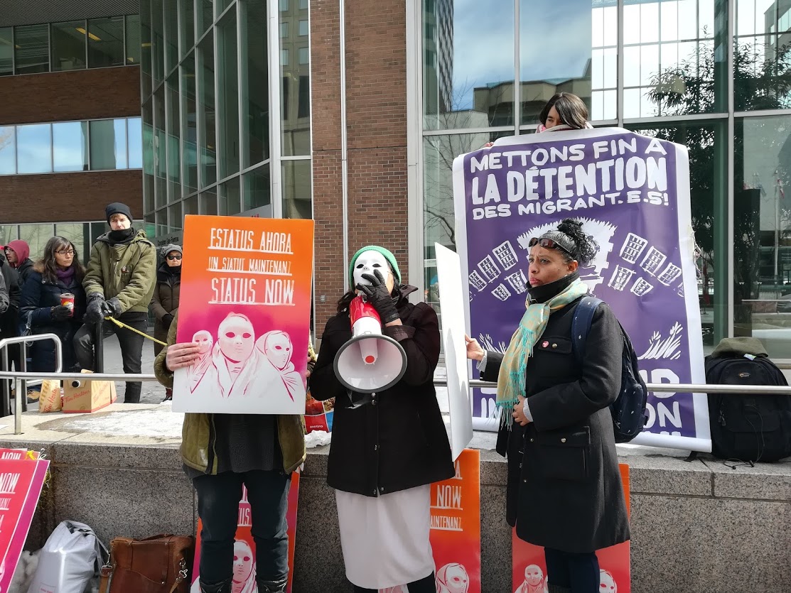 Une centaine de personnes se sont réunies jeudi devant le complexe Guy-Favreau, à Montréal, pour soutenir Lucy Francineth Granados, impliquée dans le Collectif des femmes sans statut de Montréal. Après s’être vu refuser le statut de réfugié, Mme Granados a fait une demande de résidence permanente humanitaire l’été dernier. Or, mardi matin, alors que sa demande n’avait pas encore été traitée, elle a été arrêtée par l’ASFC puis enfermée au centre de détention de Laval. Elle quittera le pays sans pouvoir sortir de détention.