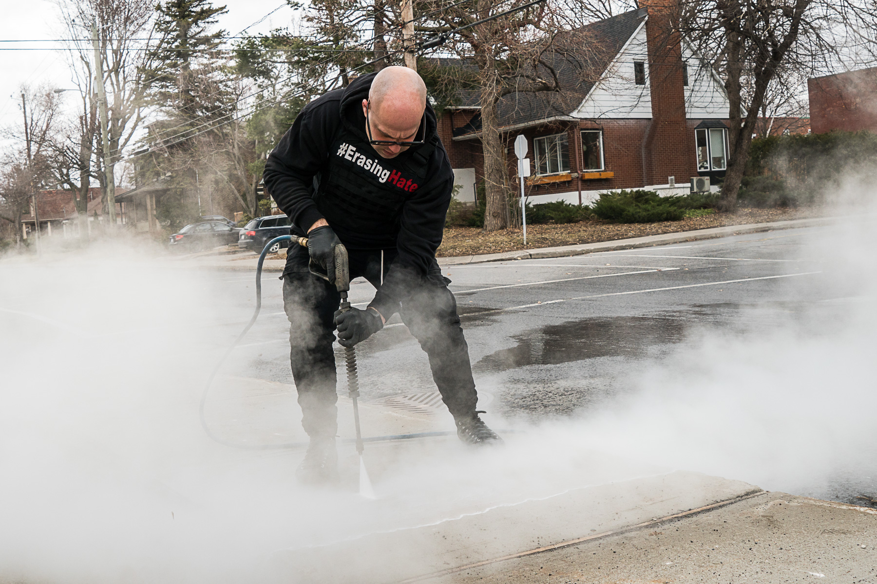 Depuis huit ans, le Montréalais Corey Fleischer efface les graffitis haineux des rues de la métropole. Rapidement, sa cause personnelle est devenue le mouvement mondial #ErasingHate. Métro l’a accompagné dans l’une de ses missions. Compte rendu.