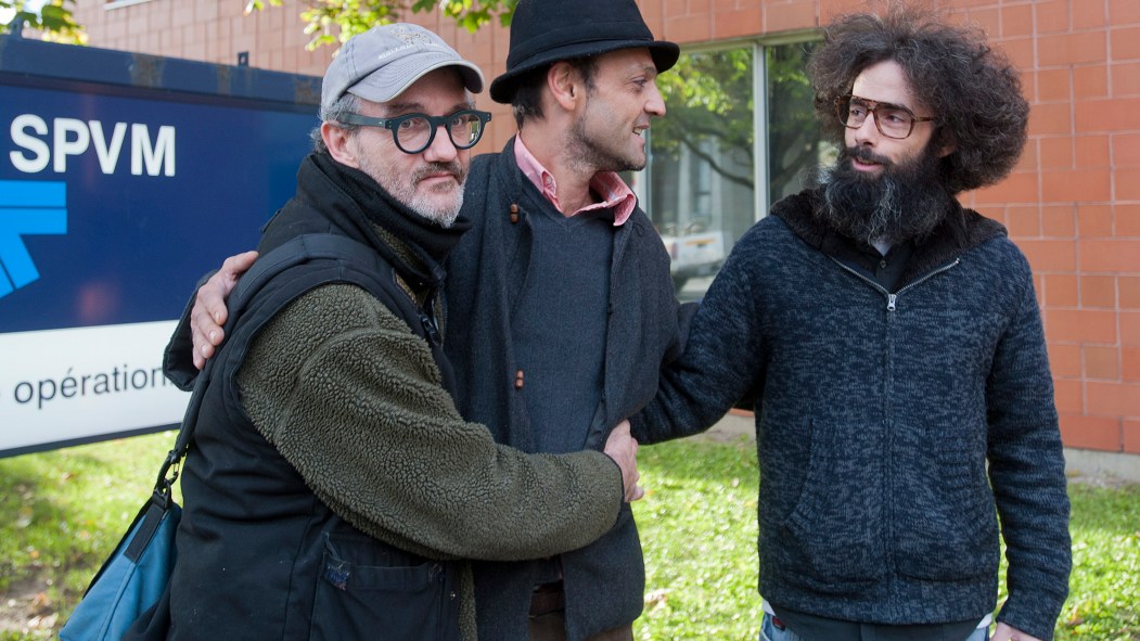 Rudi Ochietti, Serge Lavoie et Simon Pagé avaient été appréhendés sans ménagement dans un local d’artistes qu’ils partagent avec d’autres créateurs sur la rue Papineau à Montréal. Les images ont été diffusées à la télévision et sur les réseaux sociaux.