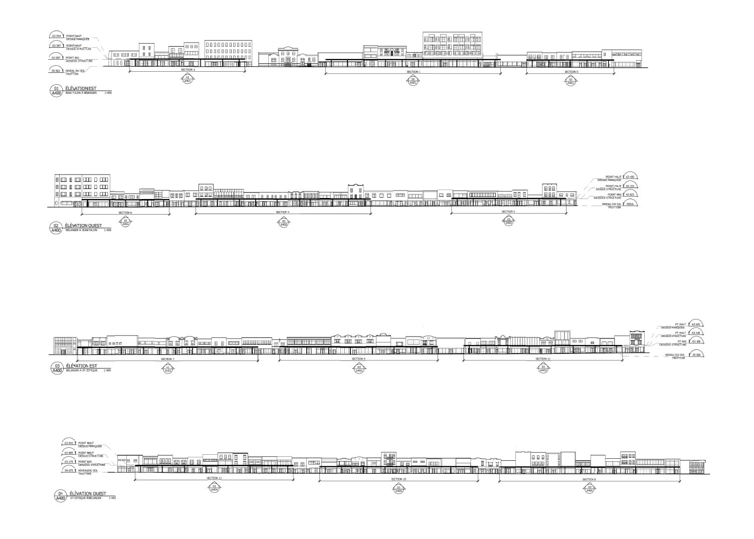 Toutefois, sur une partie des plans, sept discontinuités sont identifiées comme une «traverse piétonne». La relationniste à la Ville de Montréal, Audrey Gauthier, a précisé à Métro que la marquise est interrompue «afin de dégager la vue, de laisser pénétrer davantage de lumière et de mettre en valeur l’architecture de certains bâtiments».
