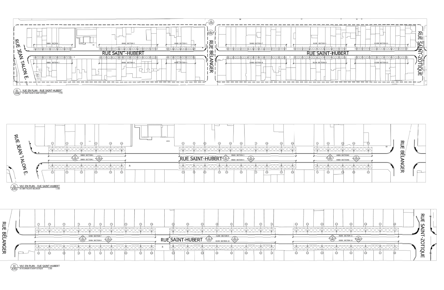 Les plans qui accompagnent l’appel d’offres lancé par la Ville de Montréal montrent que la marquise sera construite en trois structures distinctes entre chaque intersection, laissant des espaces sans structure. Huit tronçons seront découverts, tant du côté est que ouest de la rue, comme devant les boutiques Urban Depôt, Neon ou Radio St-Hubert.