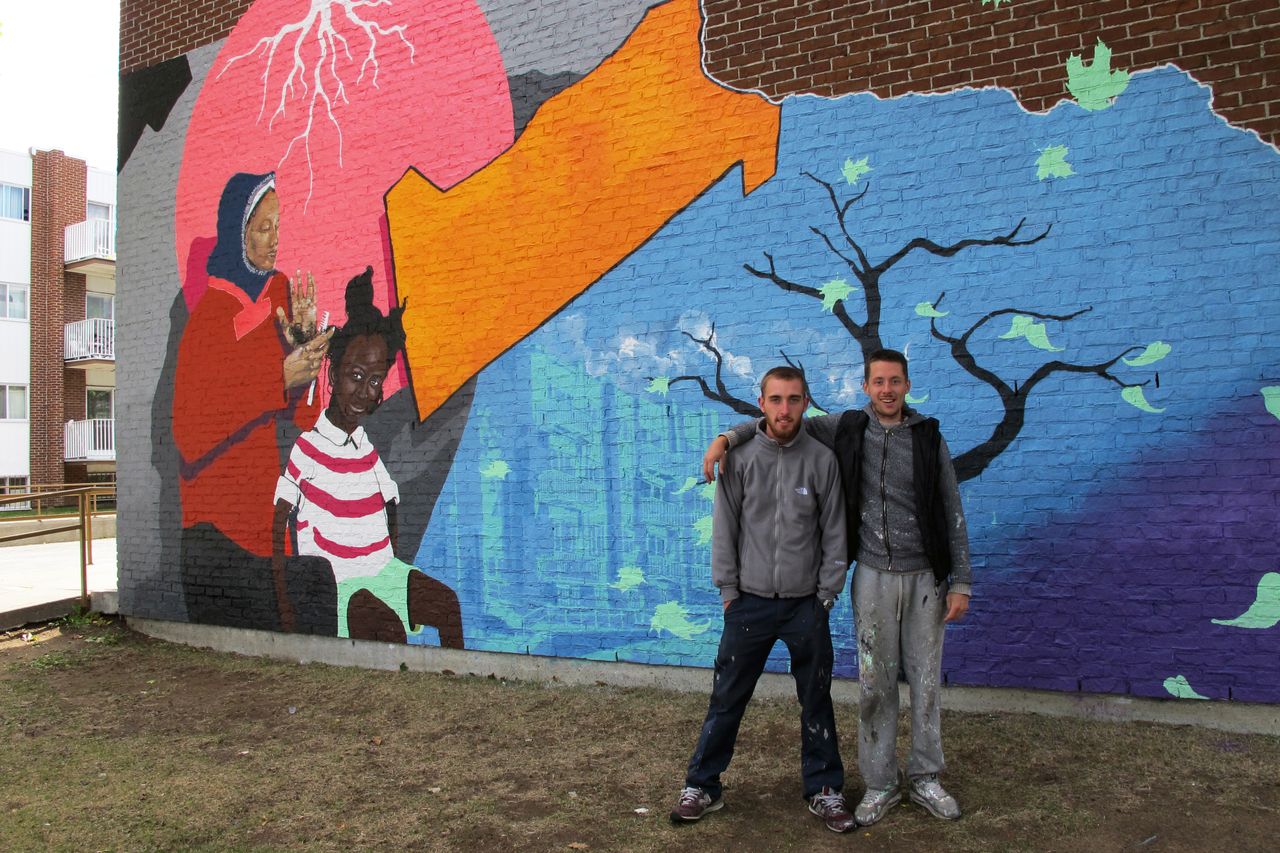 L’organisme Mu a dévoilé, jeudi, le triptyque de murales Nous sommes ici, dans l’arrondissement de Montréal-Nord. L’œuvre, réalisée par les artistes Arnaud Grégoire et Cyril Blanchard, orne désormais les murs des habitations Place Normandie. C’est la première fois que Mu se concentre sur Montréal-Nord.
