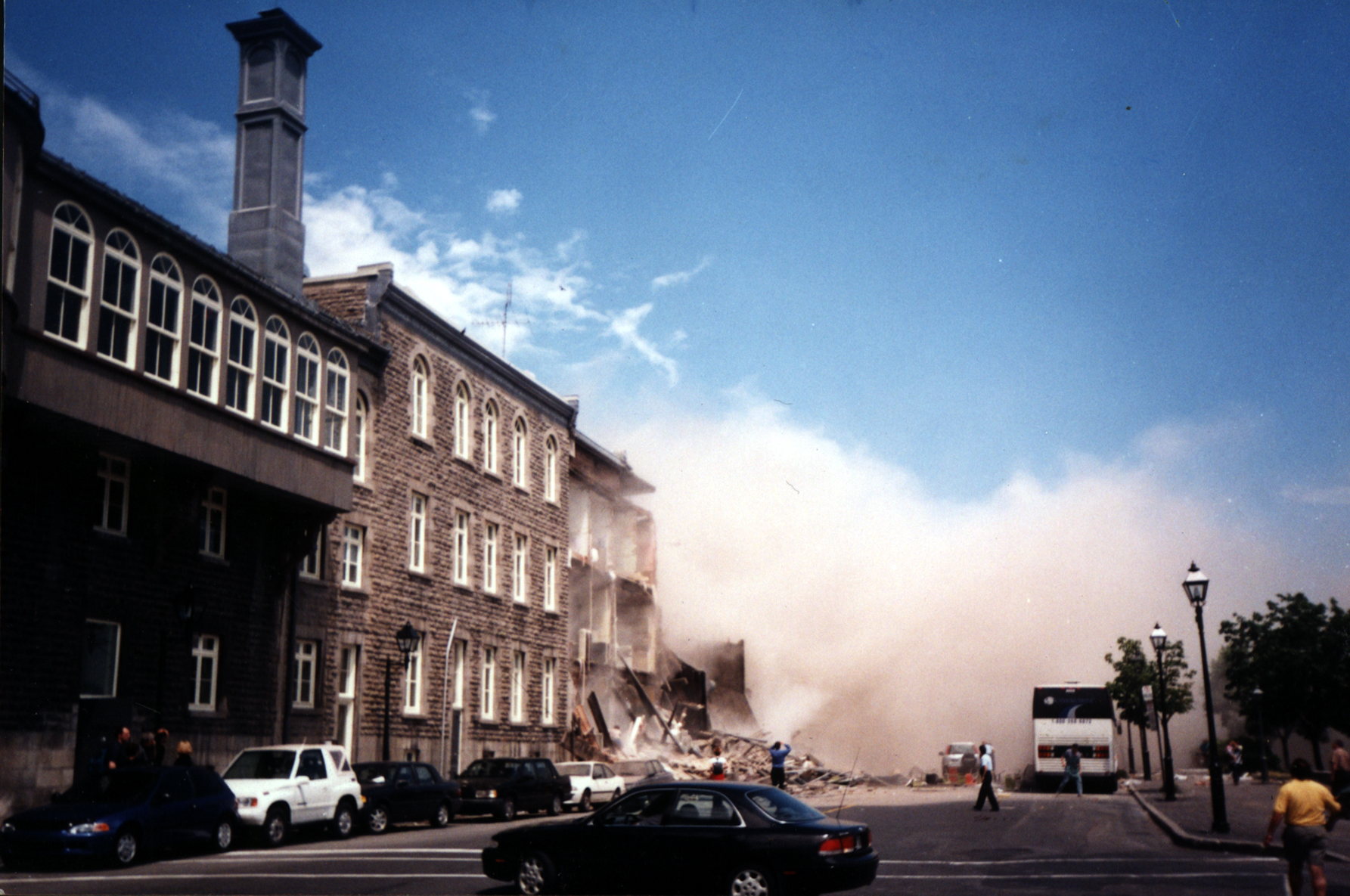 C’était un mardi. On était au mois de juin et il faisait très beau. Le matin, j’avais une réunion dans le Vieux-Montréal. Je suis revenu vers midi. Quand je suis entrée, il y avait une odeur de gaz. J’ai demandé au responsable d’appeler le 911. On avait déjà eu un problème de gaz avant. Il n’y avait plus d’itinérants à l’Accueil Bonneau, mais les bénévoles et les employés étaient là. Je voyais que les pompiers n’arrivent pas, et j’ai dit aux gens de quitter les lieux. On était encore 20 à l’intérieur, quand le «boum» s’est produit. C’était l’obscurité. Il y a beaucoup de poussière. Je n’ai pas été secouée, le souffle est venu de l’extrémité de la maison. C’est la façade qui a été soufflée. À ce moment-là, je me suis demandée ce qui va arriver de nous. Je savais que c’était une explosion et pendant quelques secondes, je me suis demandé ce qu’on va devenir. J’ai pensé à la fin de l’Accueil Bonneau.