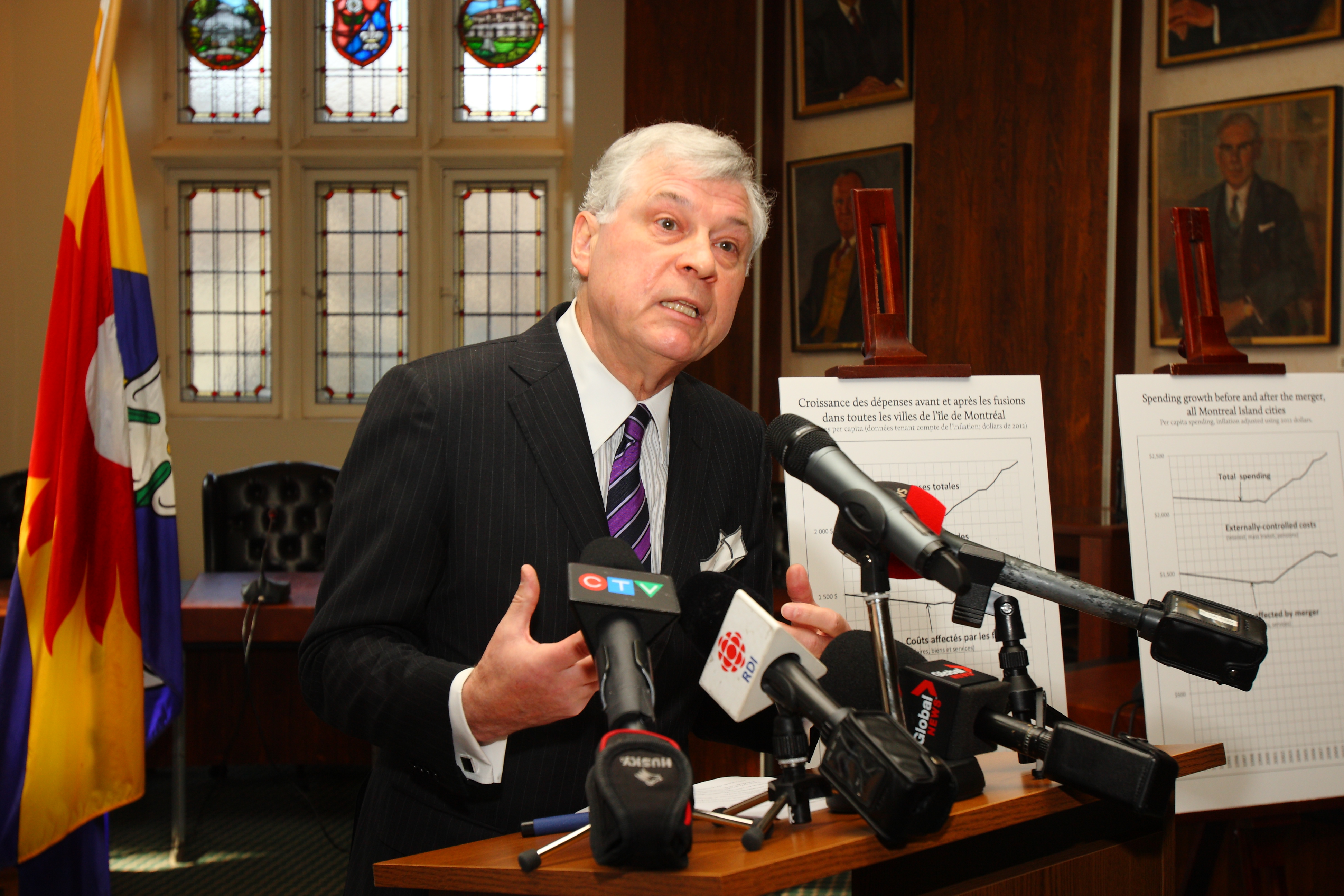 «La solution ne se trouve pas à Montréal, mais à Québec», a indiqué le maire de Westmount. Il croit que le gouvernement de Pauline Marois pourrait être à l’écoute des ses propositions puisqu’il y a encore, selon lui, beaucoup de Montréalais qui sont furieux contre le Parti Québécois d’avoir imposé les fusions en 2002.