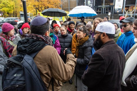 Une centaine de personnes d’origines et de religions différentes se sont rassemblées devant le musée de l’Holocauste à Montréal, dimanche, en hommage aux 11 victimes de l’attentat antisémite de Pittsburgh survenu samedi.