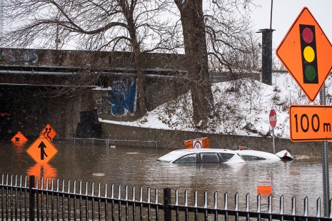Cette artère importante qui lie le centre-ville au sud-ouest de la métropole est submergée d’eau depuis mardi après-midi, tout juste avant l’heure de pointe.