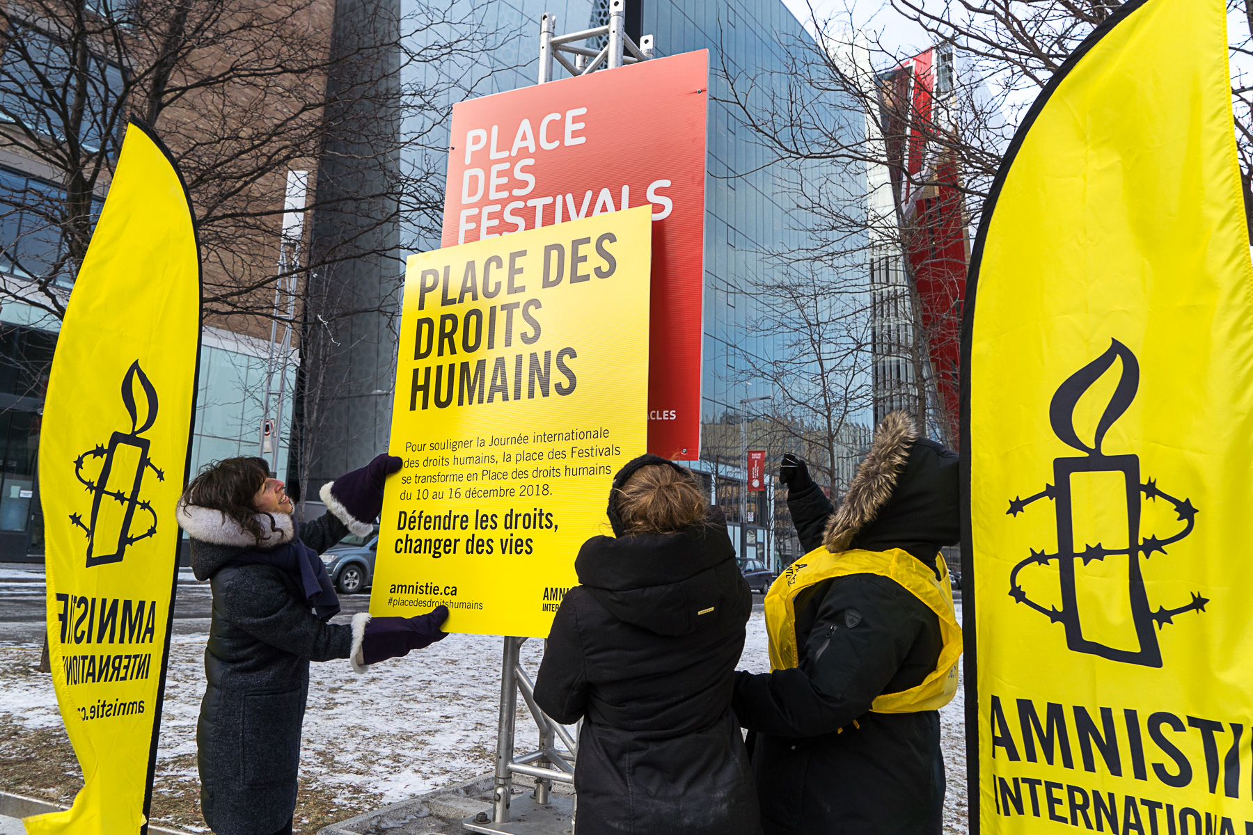 C’est Amnistie internationale Canada francophone (AICF) qui est derrière cette initiative. Celle-ci coïncide aussi avec la Journée internationale des droits humains et la publication du rapport annuel de l’organisme, qui s’intéresse cette année à la résistance des femmes.