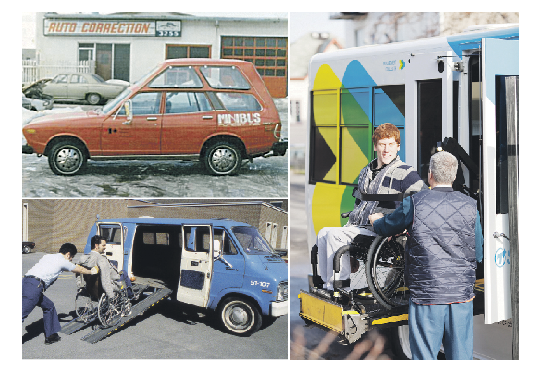 La première initiative québécoise de transport adapté vient de la société Minibus Forest qui gère jusqu’à 16 véhicules et transporte plus de 7 800 personnes par mois. Il faudra encore cinq ans pour que le gouvernement adopte une loi stipulant que les handicapés ont les mêmes droits que les autres citoyens.