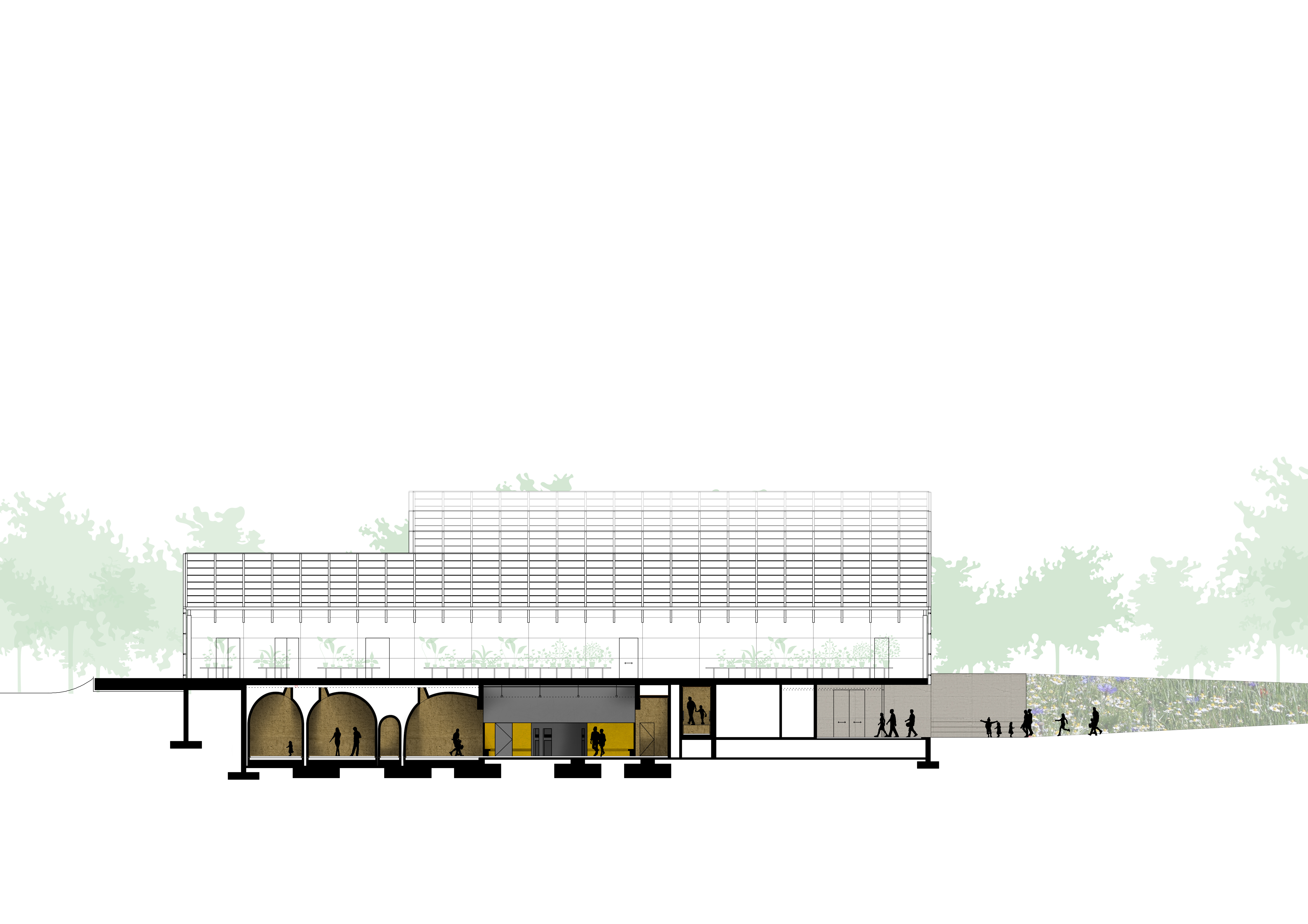 Un tunnel sous-terrain reliant les diverses salles et rappelant les galeries que bâtissent les fourmis fait aussi partie des plans.