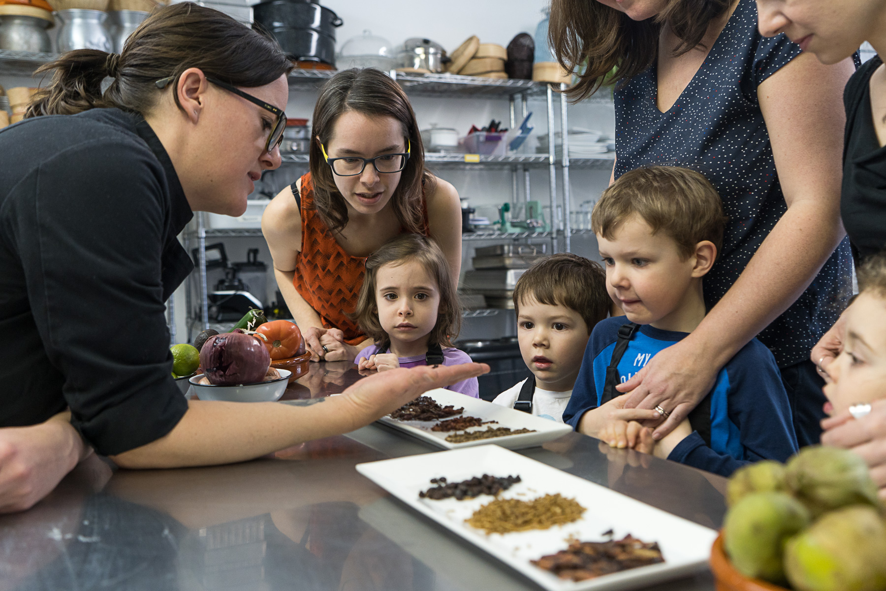Une semaine avant l’évènement, la cheffe Maurỉn Arrelano a convié quatre enfants âgés de trois à six ans pour une répétition à la Centrale culinaire dans le Mile End. Après une courte introduction, elle leur présente les bibittes et leur propose de goûter à de gros grillons mexicains (plutôt salés), à des fourmis brésiliennes (au goût fumé) et à des ténébrions de Frelighsburgh (ils remportent la palme chez les enfants qui semblent déjà privilégier l’achat local malgré leur jeune âge): «c’est comme des Rice Krispies», lance timidement Elisabeth, 6 ans.