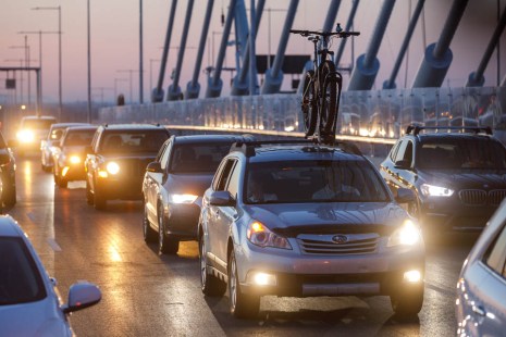 À l’aube, sous un ciel sans nuages, un cortège de plusieurs voitures s’est mis en branle à basse vitesse. Tous ont été à même d’apprécier la vue imprenable du centre-ville de Montréal sur le pont qui est plus haut que l’ancienne structure.