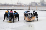 Les jeunes filles s’entraînent en vue du circuit québécois de canot à glace, qui s’arrêtera au Vieux-Port de Montréal le 23 février prochain. D’ici là, elles ont une compétition samedi, à l’Isle-aux-Coudres. La grande tournée provinciale de ce sport extrême se terminera à Québec, le 2 mars.