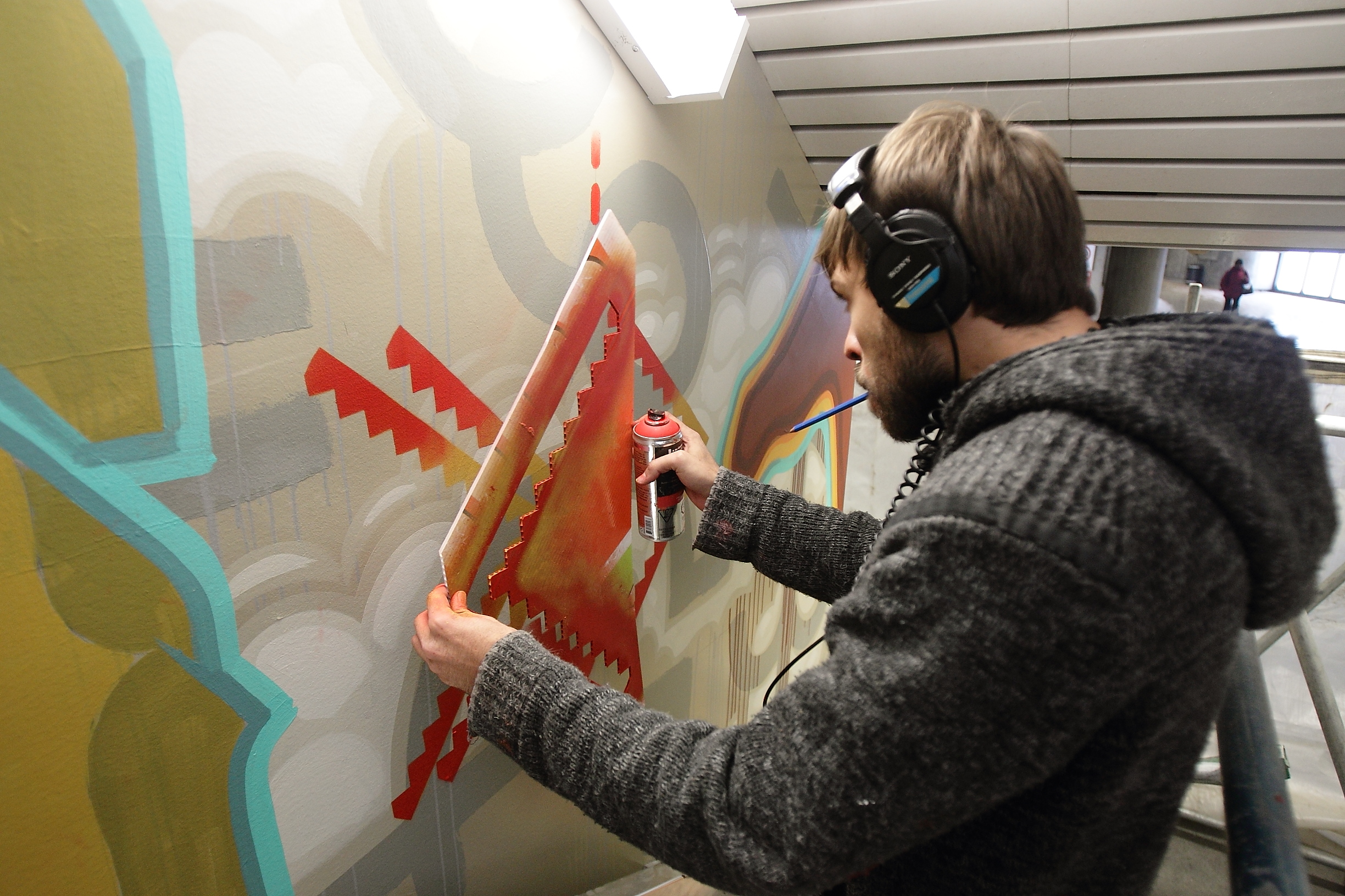Alan Ganev, un des artistes qui a participé à la conception et la production de la murale, explique que son équipe s’est inspirée du thème du transport, pour migrer vers le cheval, qui représente l’idée de la fuite, de la débandade. «Comme lorsque qu’un gros événement comme Osheaga se termine, et qu’on voit sortir une grosse foule du métro», image-t-il, en précisant que la démarche a été très spontanée.