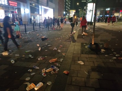 Les abords du Centre Bell ont été jonchés de détritus jetés par la foule. Toutefois, la défaite n’a pas créé de débordements.