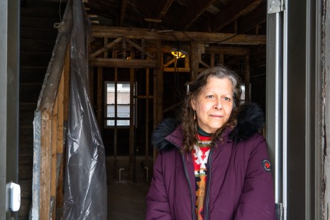 L’appartement de Frieda Weinstein, dans Côte-Des-Neiges—Notre-Dame-De-Grâce, subit de grosses rénovations par son propriétaire. Elle craint qu’elle et son mari soient forcés de déménager. Le rez-de-chaussée est complètement vide et sans murs. Le 16 février 2021.