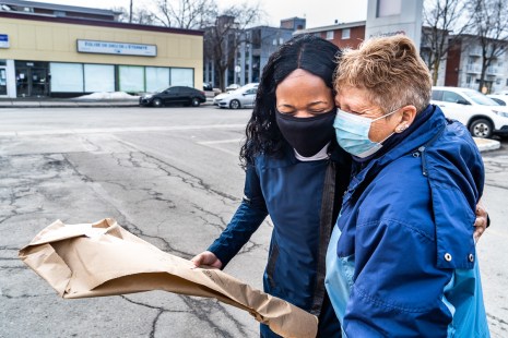 Un matin, Ginette Henrichon ne se sentait pas bien. Elle est allée subir un test de dépistage de la COVID-19. L’infirmière, Géliana Noël, a alors remarqué que sa pression est élevée et Mme Henrichon a été redirigée vers l’hôpital, où on constate qu’elle est sur le point d’avoir un infarctus. Trois semaines plus tard, après s’être remise d’une opération, Mme Henrichon, très émue, a tenu à offrir des fleurs et à remercier l’infirmière qui lui a sauvé la vie. Photo prise le 18 mars 2021.