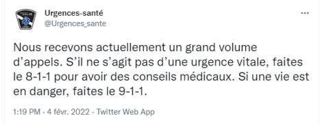 Si une vie n’est pas en danger, les citoyens sont invités à composer le 8-1-1 afin d’obtenir des conseils médicaux.