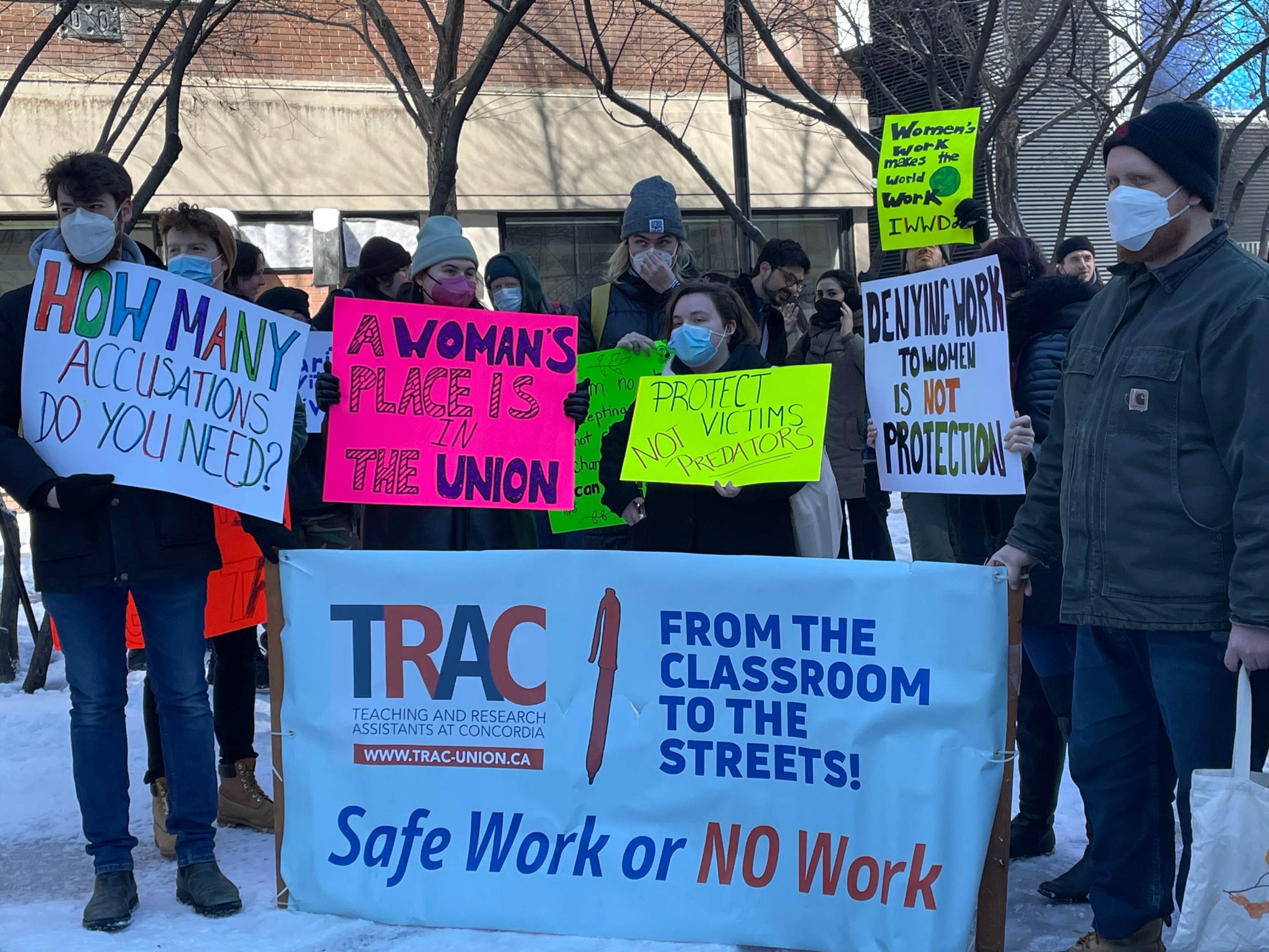 Cette mobilisation était organisée par le Syndicat étudiant de Concordia (Teaching Assistance and Research Assistance – TRAC) dans le cadre de la Journée internationale des droits des femmes. Elle survient après que des assistants d’enseignement et de recherche du département eurent lancé une campagne de dénonciation au sujet d’un professeur du département de philosophie visé par des allégations de violences à caractère sexuel toujours en poste. Les assistants refusaient de travailler pour un professeur ciblé par de telles allégations.