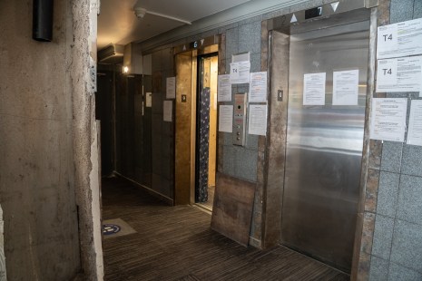 L’humidité s’est engouffrée partout dans le bâtiment, forçant l’entreprise responsable des travaux à installer des souffleurs et chauffages industriels dans toute la hauteur du bâtiment de 16 étages. En se dirigeant vers l’appartement de Vanessa, on traverse un véritable chantier, où les murs des logements vides sont tombés et où l’on constate des infiltrations d’eau. En circulant dans les couloirs, il est facile de trébucher sur un trou dans le sol ou sur des amas de pierres.