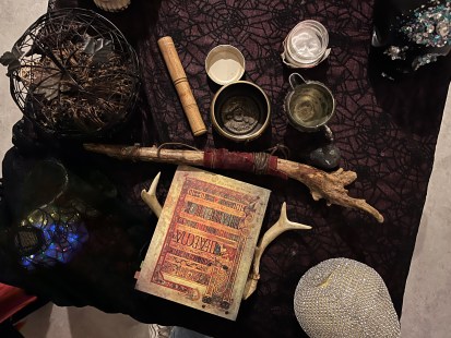 Pour célébrer ce que certains appellent le «nouvel an des sorcières», nous étions 17, en comptant les deux maîtres de cérémonie, Hobbes et Morrigane. Nous nous sommes assis en cercle sur les chaises poussées contre les murs. Au centre, un autel sur lequel reposent quatre crânes… brrr! Occulte? Certainement. Satanisme, magie noire et sacrifices sont pourtant très, très loin de l’esprit de cet événement.