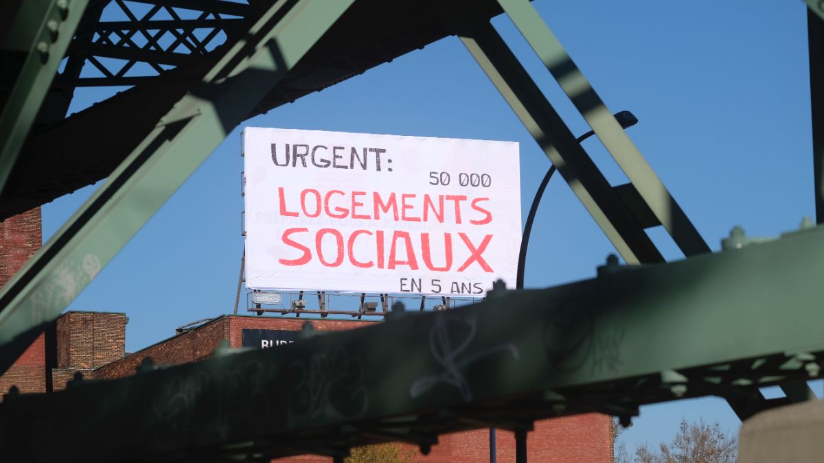 Québec doit investir davantage en logements sociaux. L’État entend le message du milieu communautaire depuis des années déjà, mais maintenant, peut le voir. Une affiche géante a été installée au pied du pont Jacques-Cartier, à Montréal.