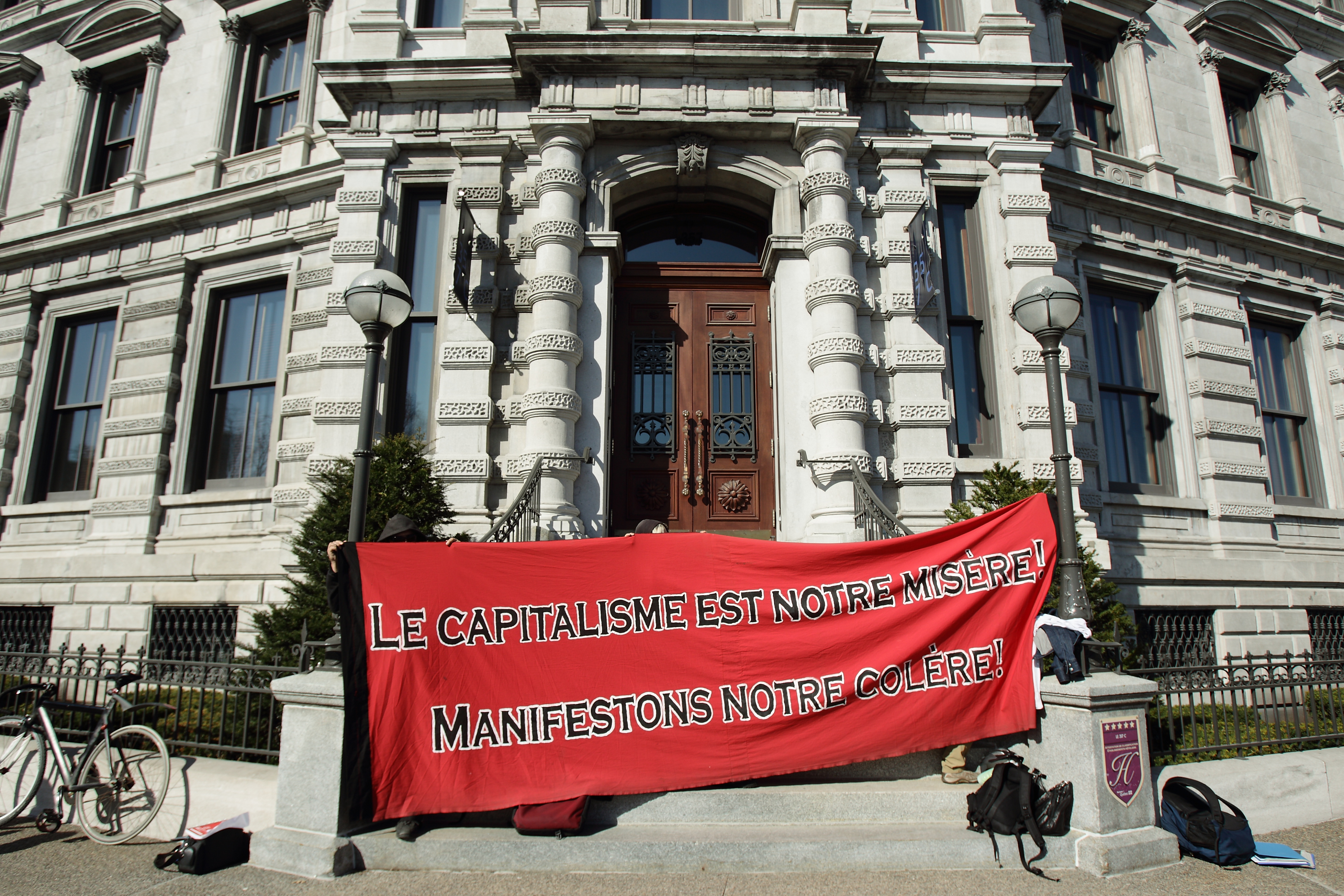 La manifestation du 1er mai qui doit débuter à 18h mercredi soir devant l’Hôtel de ville, vise comme point d’arrivée le club privé 357c dans le Vieux-Montréal. C’est la Coalition des luttes anticapitalistes (CLAC) qui organise chaque année cette marche qui marque la Journée internationale des travailleurs.