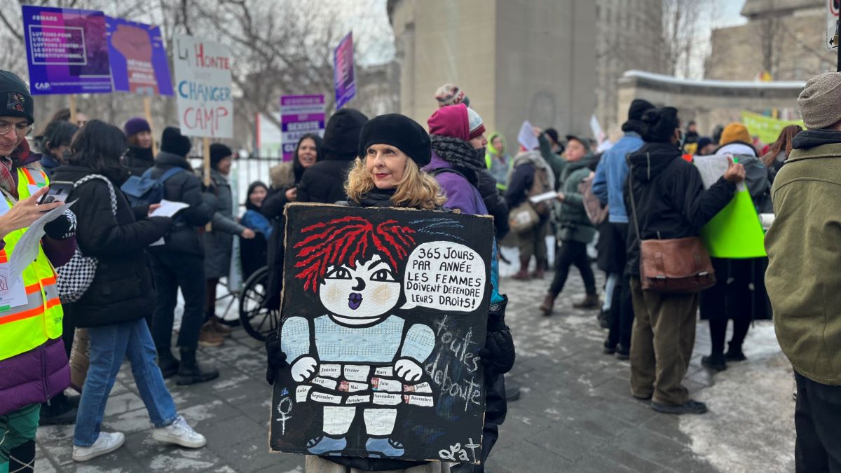 C’est dans une ambiance musicale, en fin d’après-midi, qu’une foule de femmes parsemée d’hommes s’est réunie, pancarte à la main, devant l’université McGill. Au sein de la foule, on comptait des représentantes des grandes centrales syndicales, des groupes de gauche anticapitaliste, plusieurs associations étudiantes, des femmes de la communauté LGBTQ+ et des travailleuses du milieu communautaire.